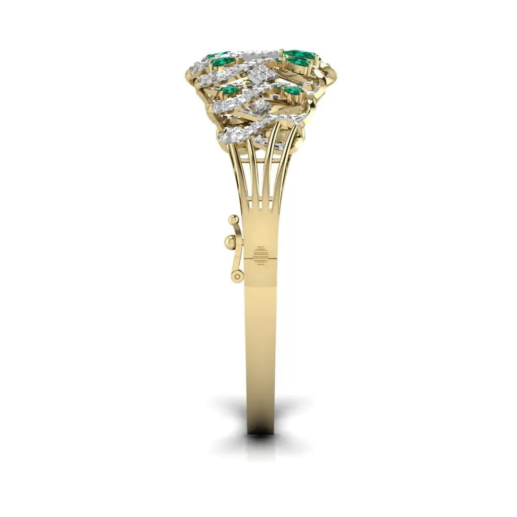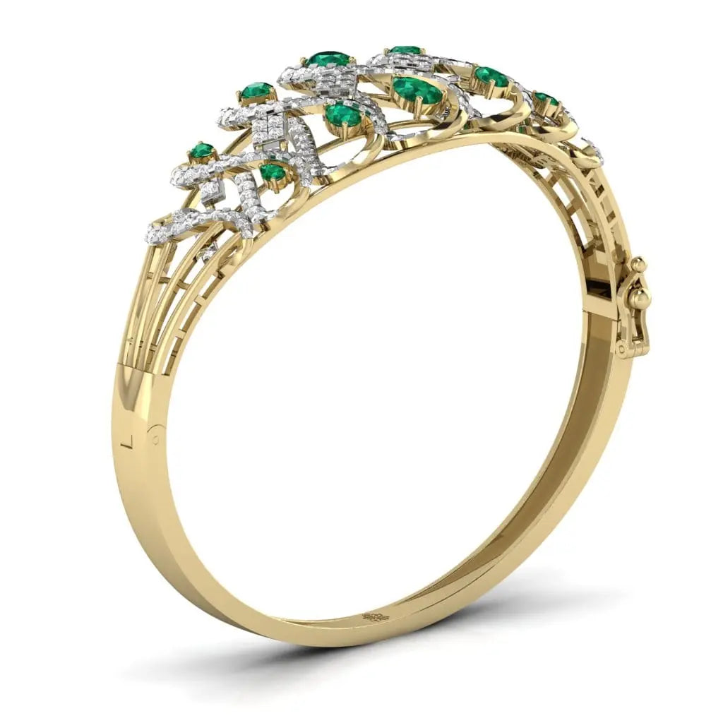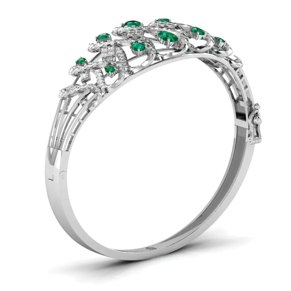 The Radiant Green Pear Diamond Bangle features a stunning lab grown green pear-shaped diamond, blending sustainable luxury with refined elegance. This sophisticated bangle offers a unique sparkle that enhances any outfit, making it an exquisite choice for those who value ethical beauty and timeless style.