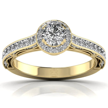 Discover refined elegance with the Radiant Halo Lab Grown Diamond Ring. Showcasing a brilliant lab grown diamond encircled by a luminous halo, this ring offers a perfect blend of ethical sourcing and exquisite design. Its sophisticated style complements any occasion, making it a timeless addition to your jewelry collection.