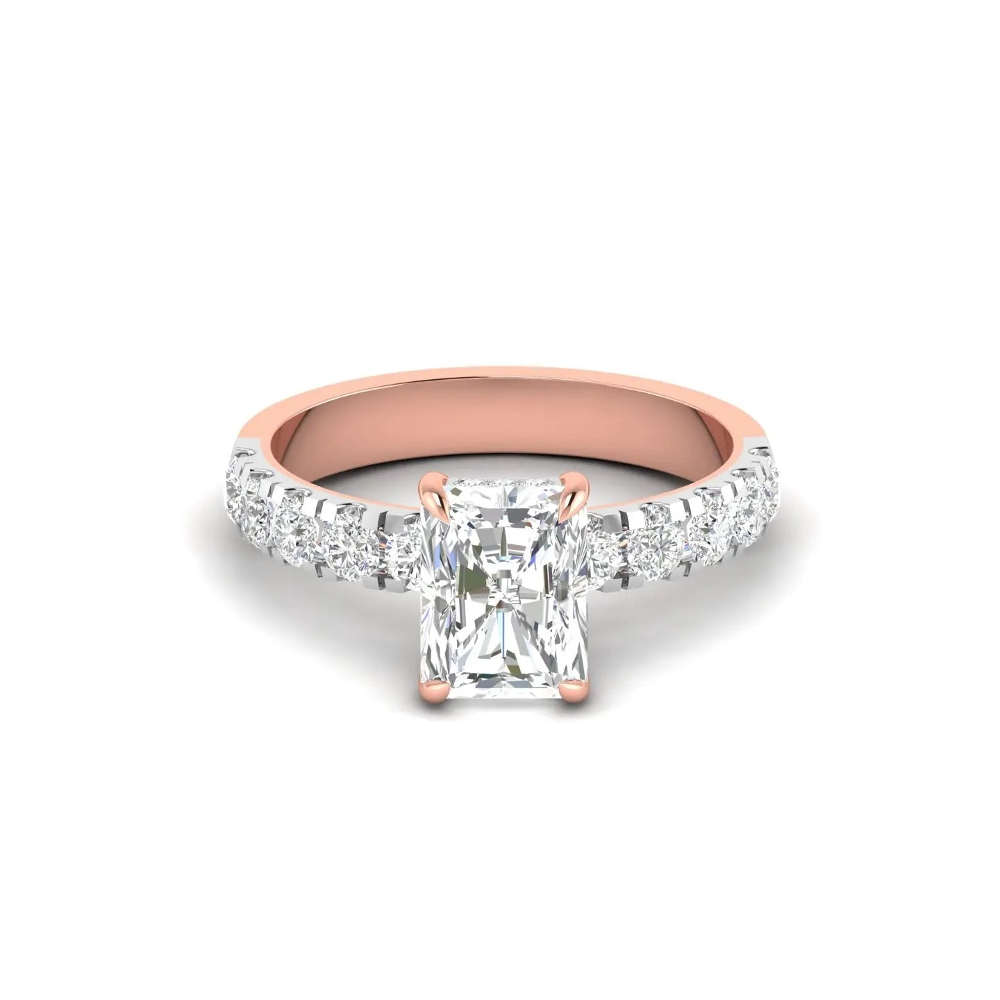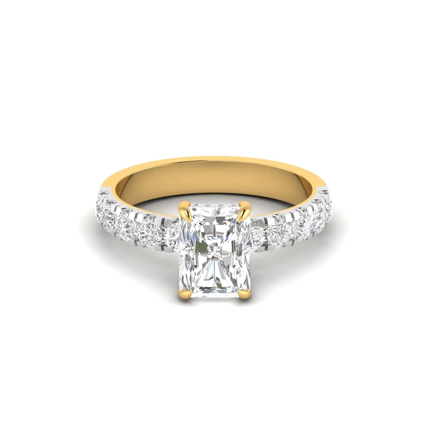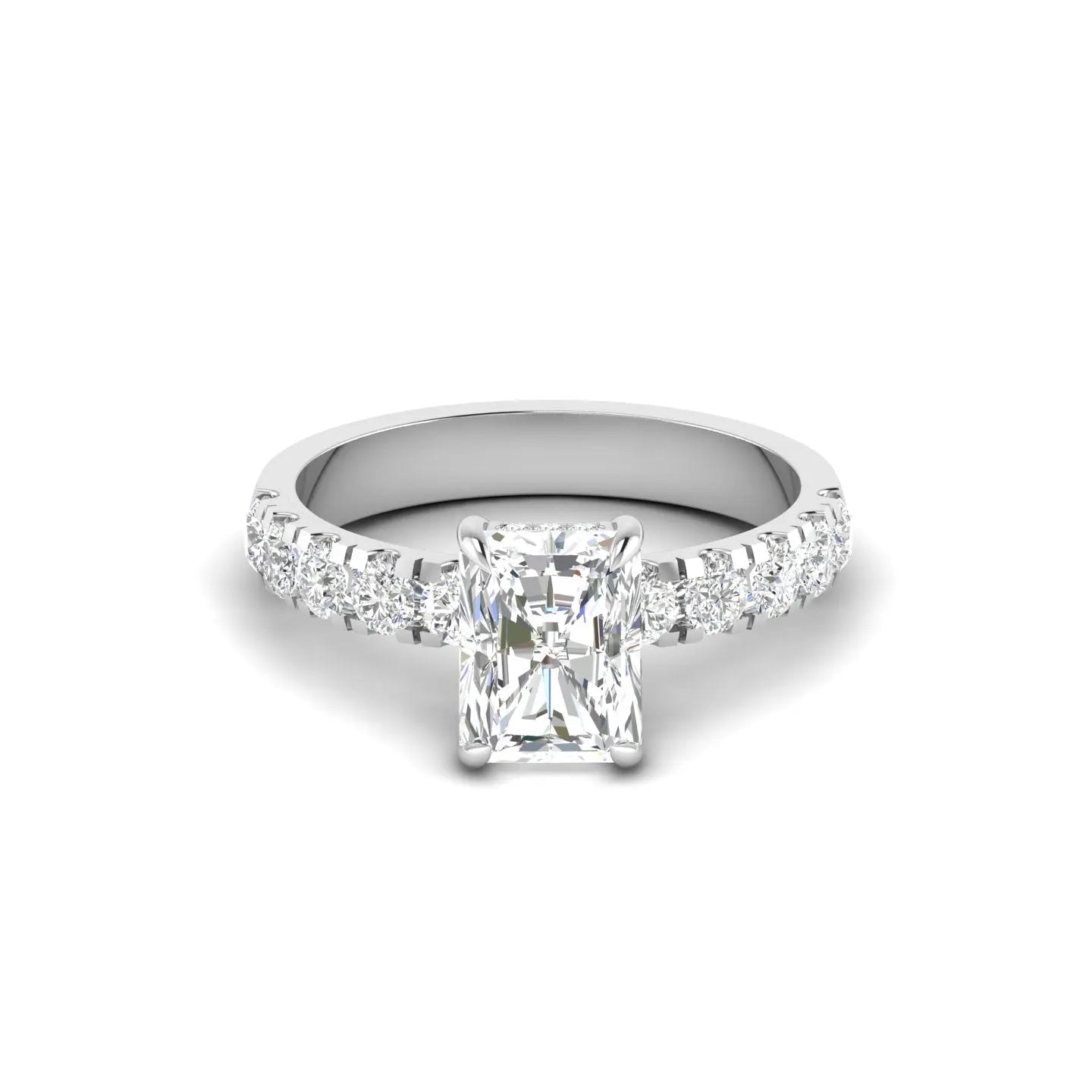 Elevate your commitment with this Radiant Cut Diamond Engagement Ring, designed to captivate with its halo setting that enhances the stone’s brilliance. Perfect as a promise ring or a symbol of enduring love, its sophisticated design combines classic elegance with modern allure. This ring promises timeless beauty and exceptional sparkle for unforgettable moments.