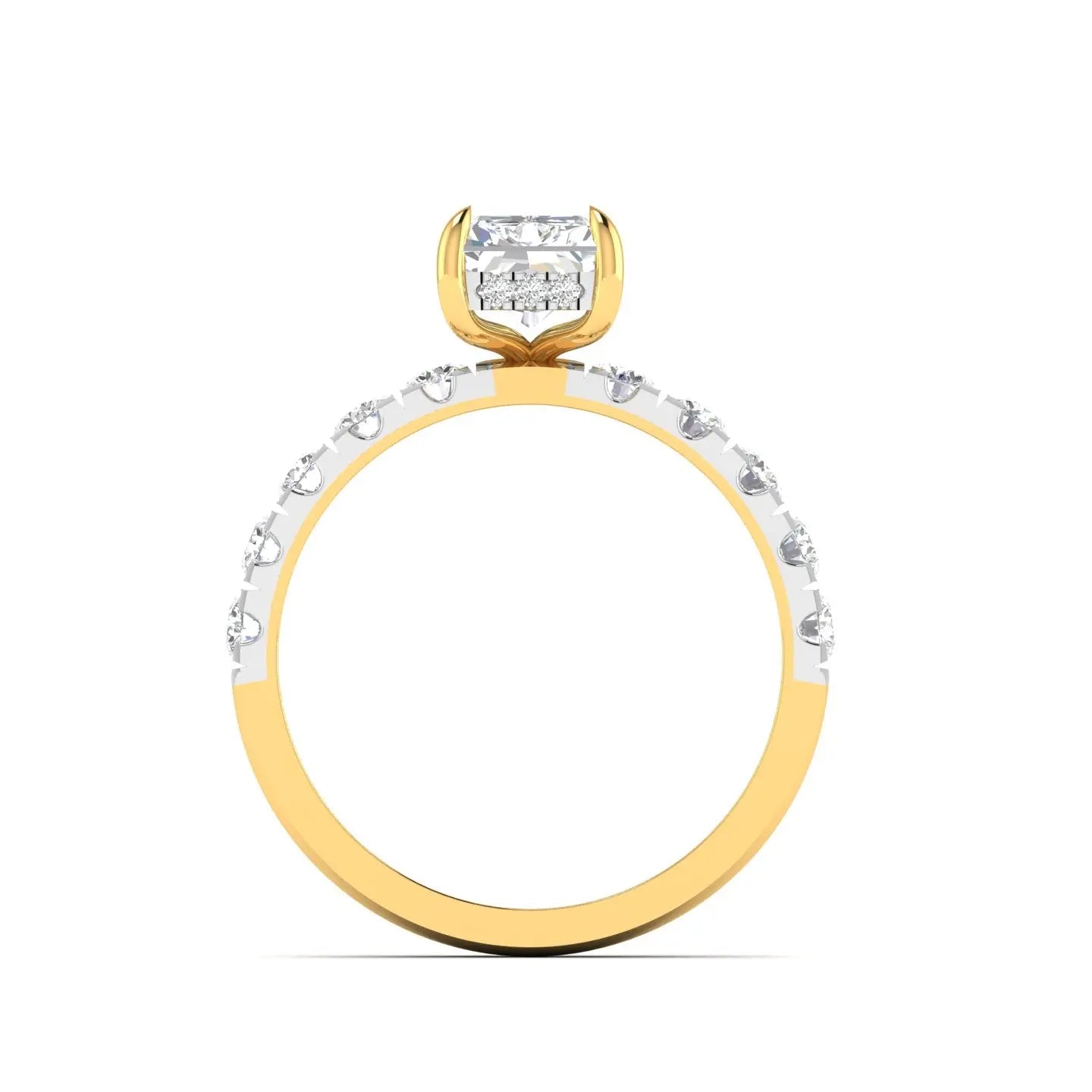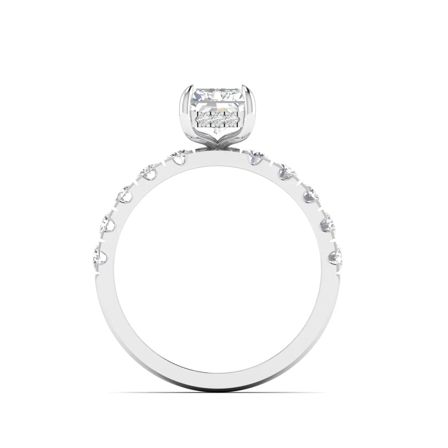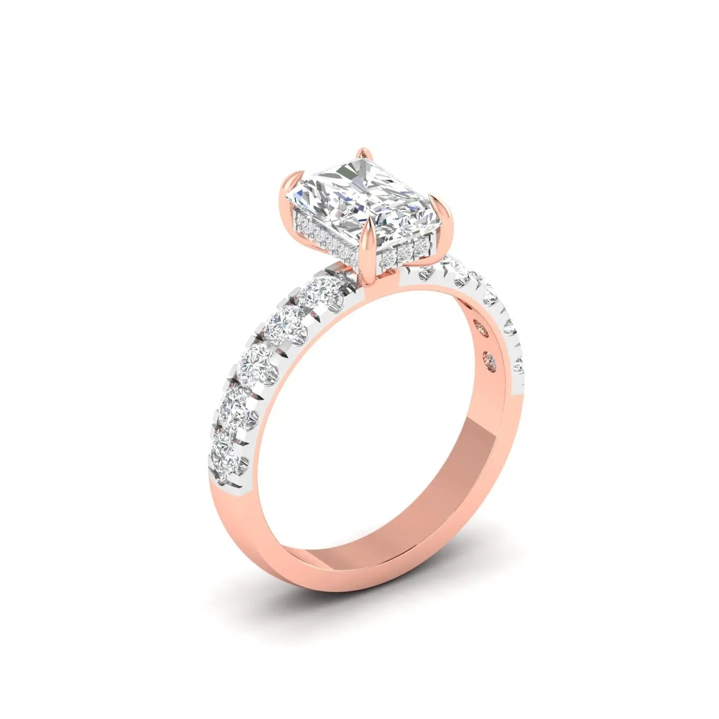 Elevate your commitment with this Radiant Cut Diamond Engagement Ring, designed to captivate with its halo setting that enhances the stone’s brilliance. Perfect as a promise ring or a symbol of enduring love, its sophisticated design combines classic elegance with modern allure. This ring promises timeless beauty and exceptional sparkle for unforgettable moments.
