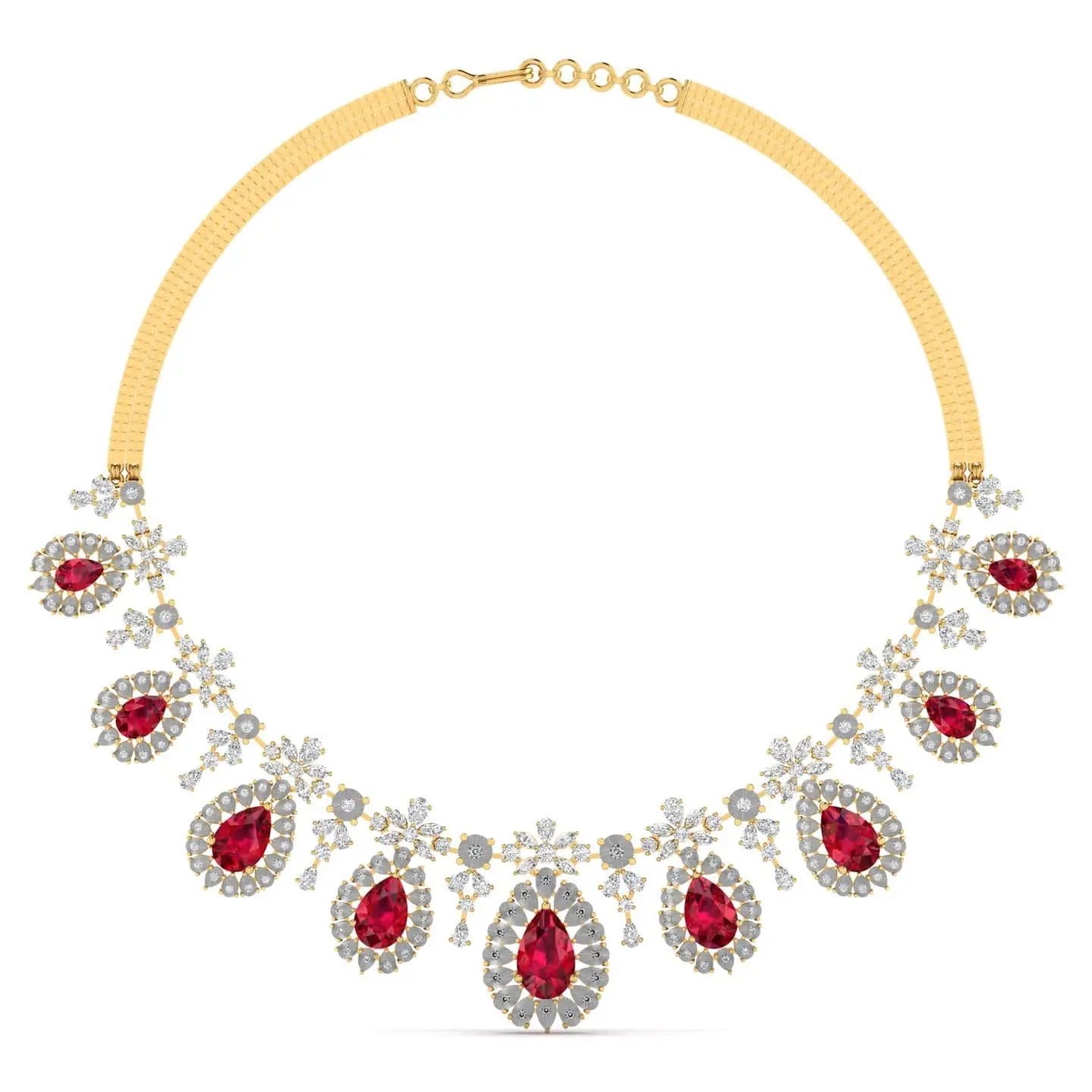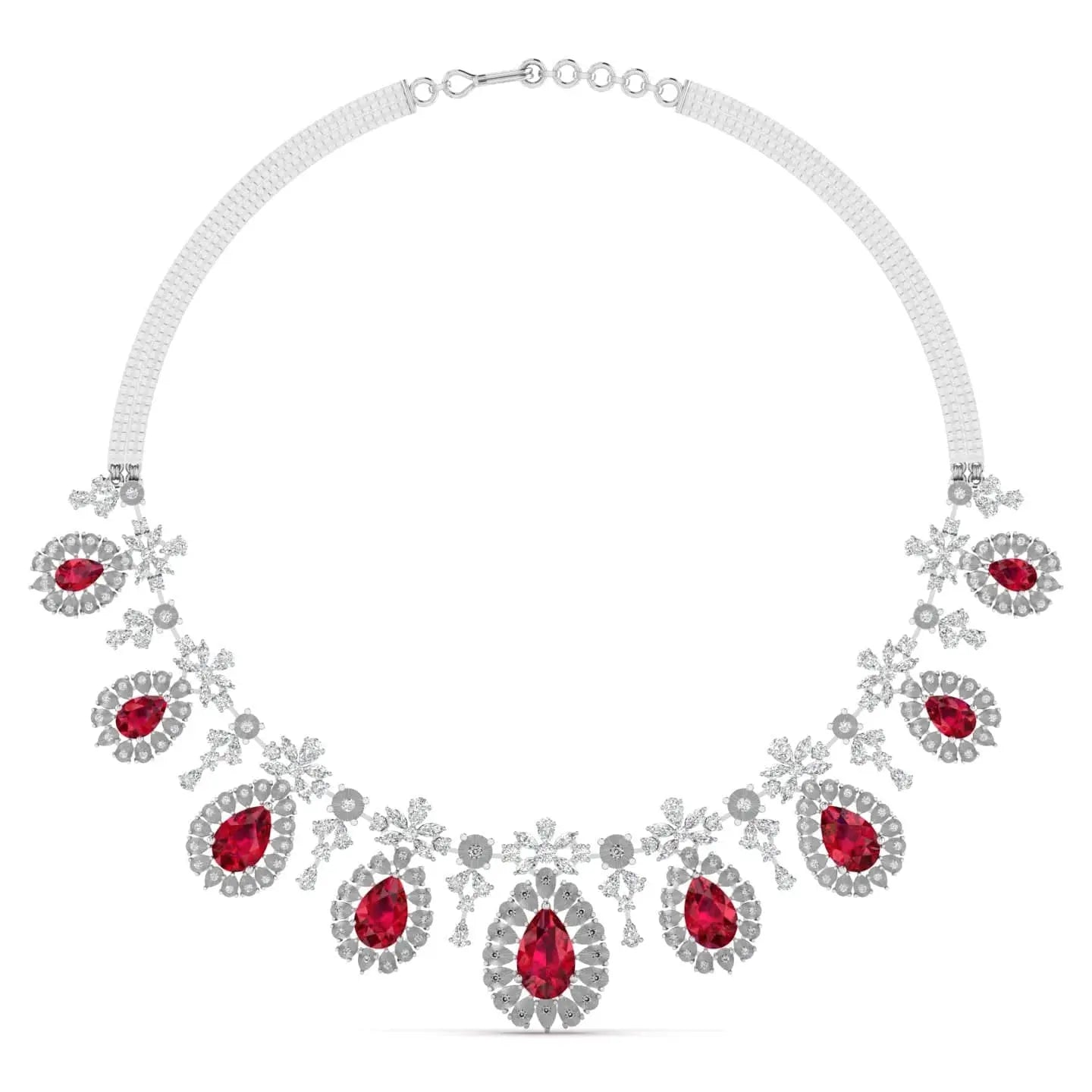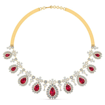 This sophisticated necklace showcases a vibrant red gemstone accented by brilliant lab grown diamonds, combining ethical craftsmanship with timeless elegance. Perfect for enhancing any ensemble, it offers a refined sparkle that complements both formal and everyday styles.