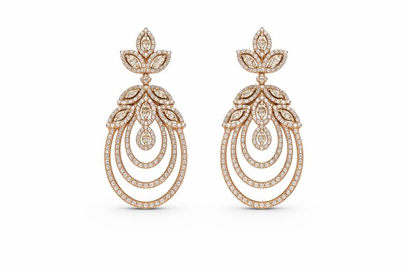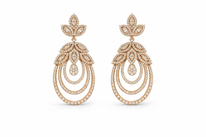 Rose Gold Finish Diamond Studded Layered Dangler Earrings