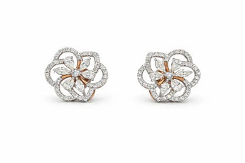 Rose Gold Openwork Flower Petal Diamond Stud Earrings