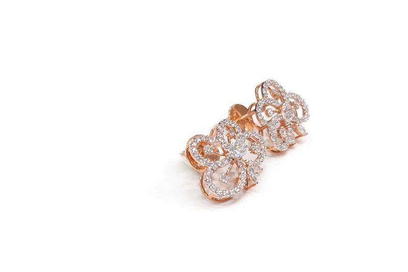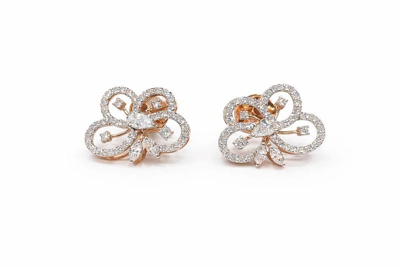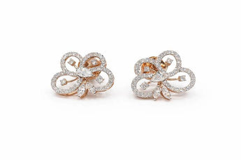 Rose Gold Triple Loop Diamond Flower Stud Earrings