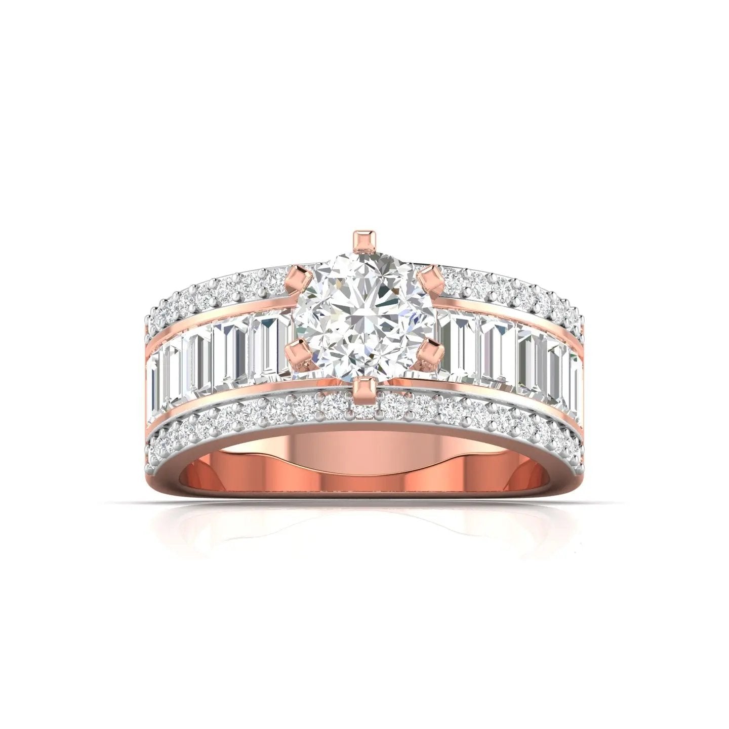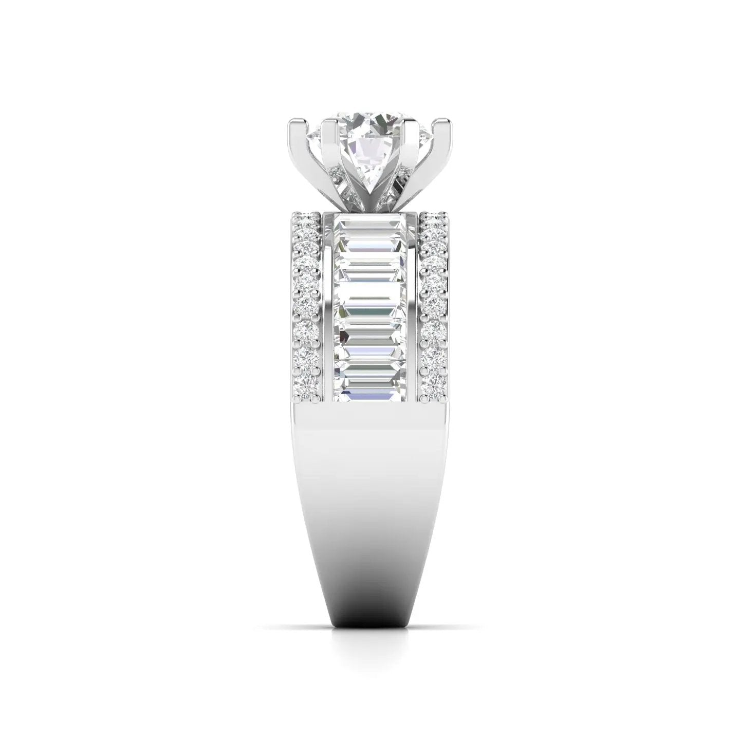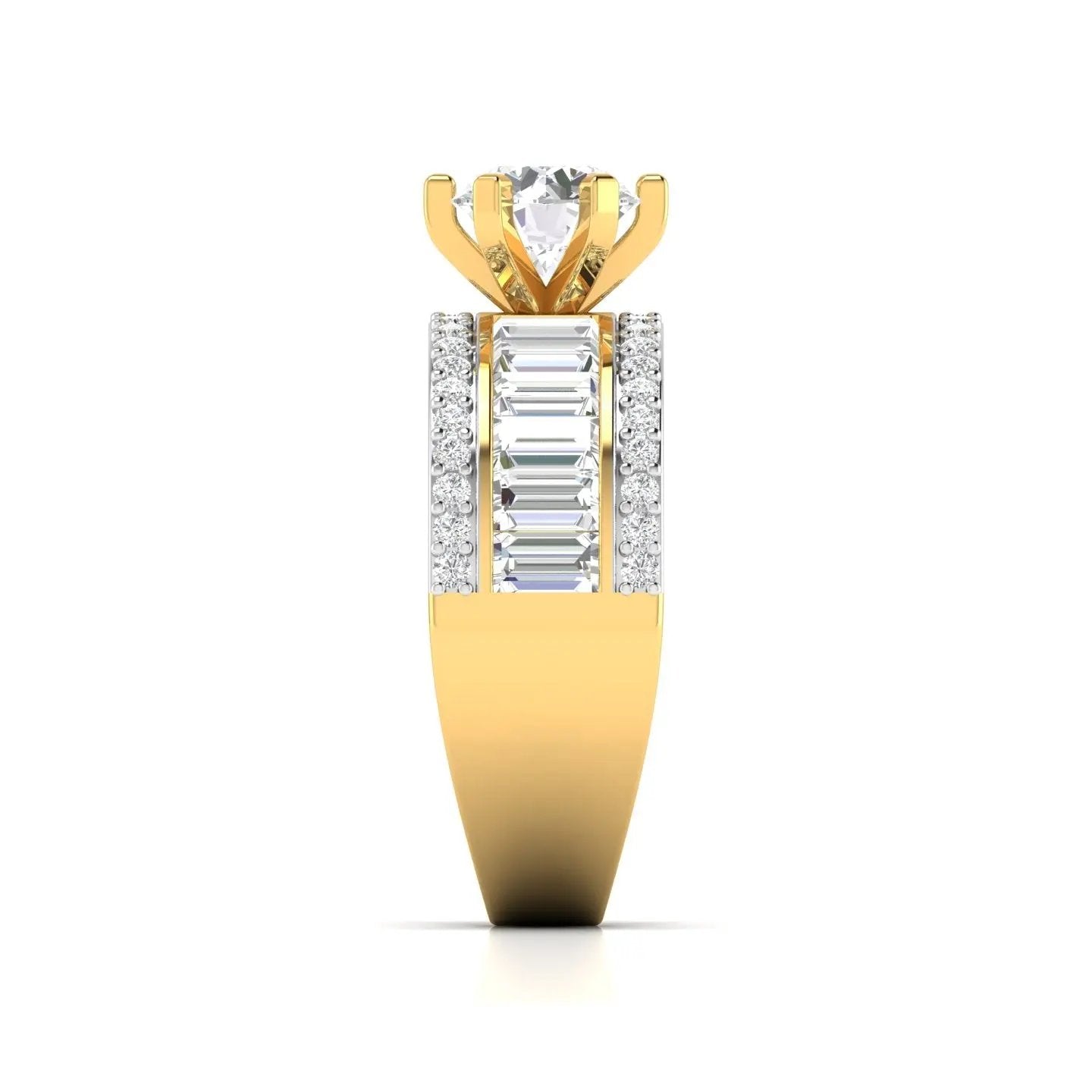 Elevate your elegance with this exquisite gold engagement ring, featuring a harmonious blend of round and baguette diamonds. Its sophisticated design offers a timeless statement piece perfect for marking life's most cherished moments or adding refined sparkle to any ensemble. Crafted to captivate, this ring seamlessly combines classic brilliance with modern flair.