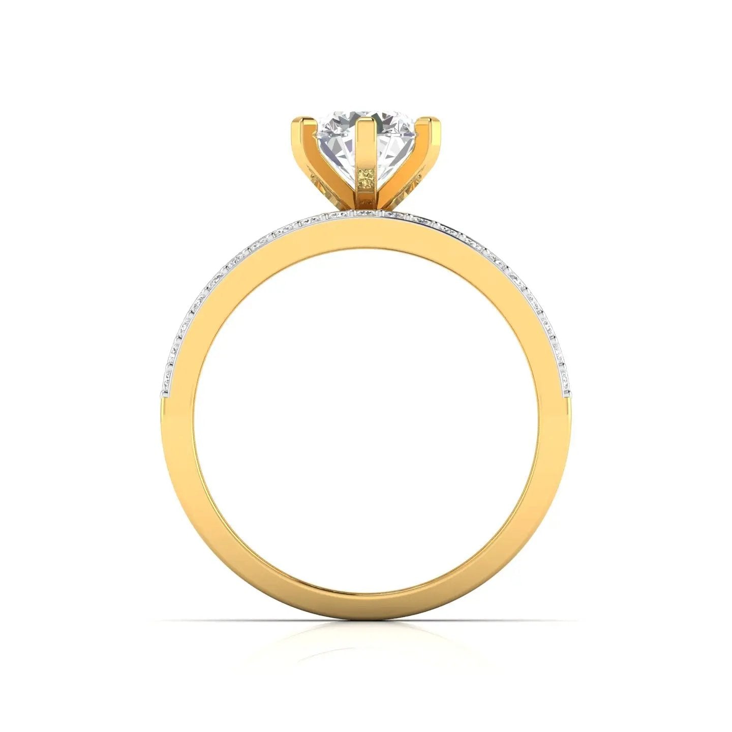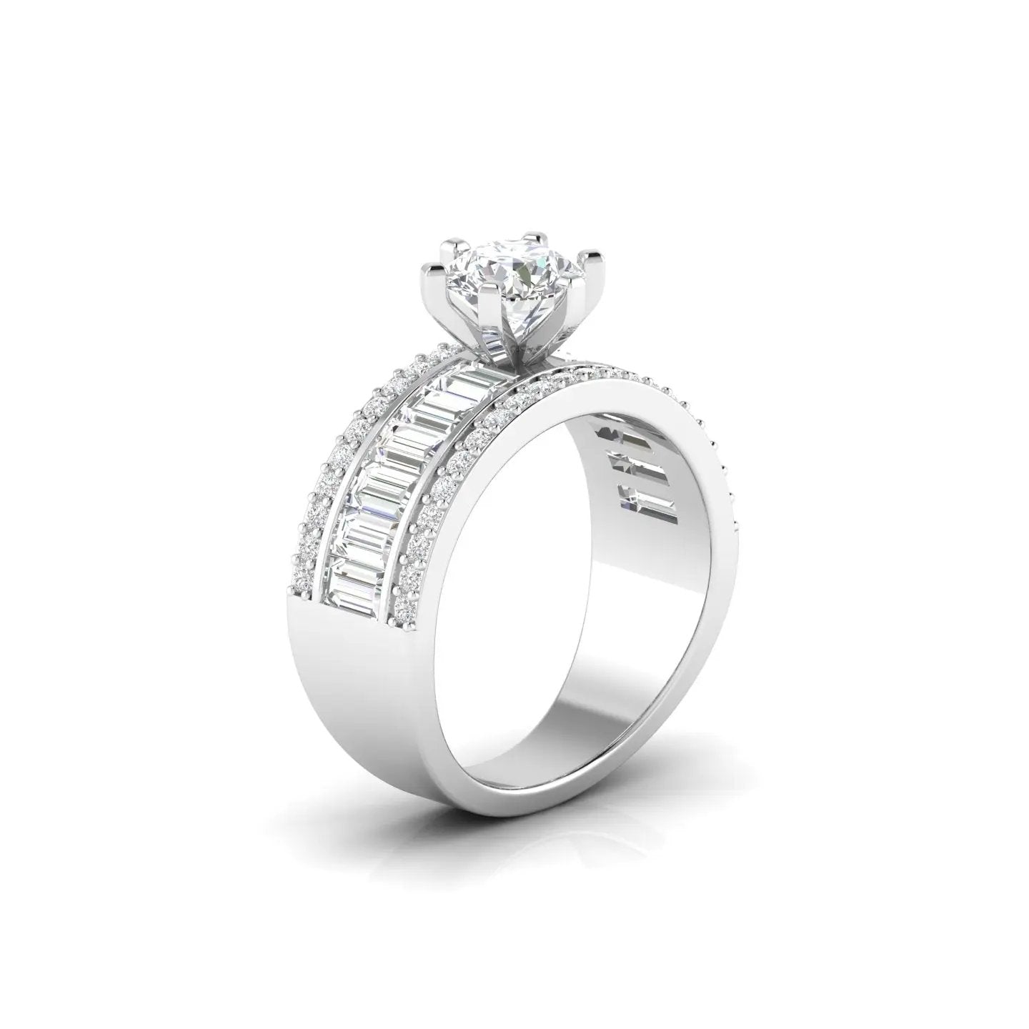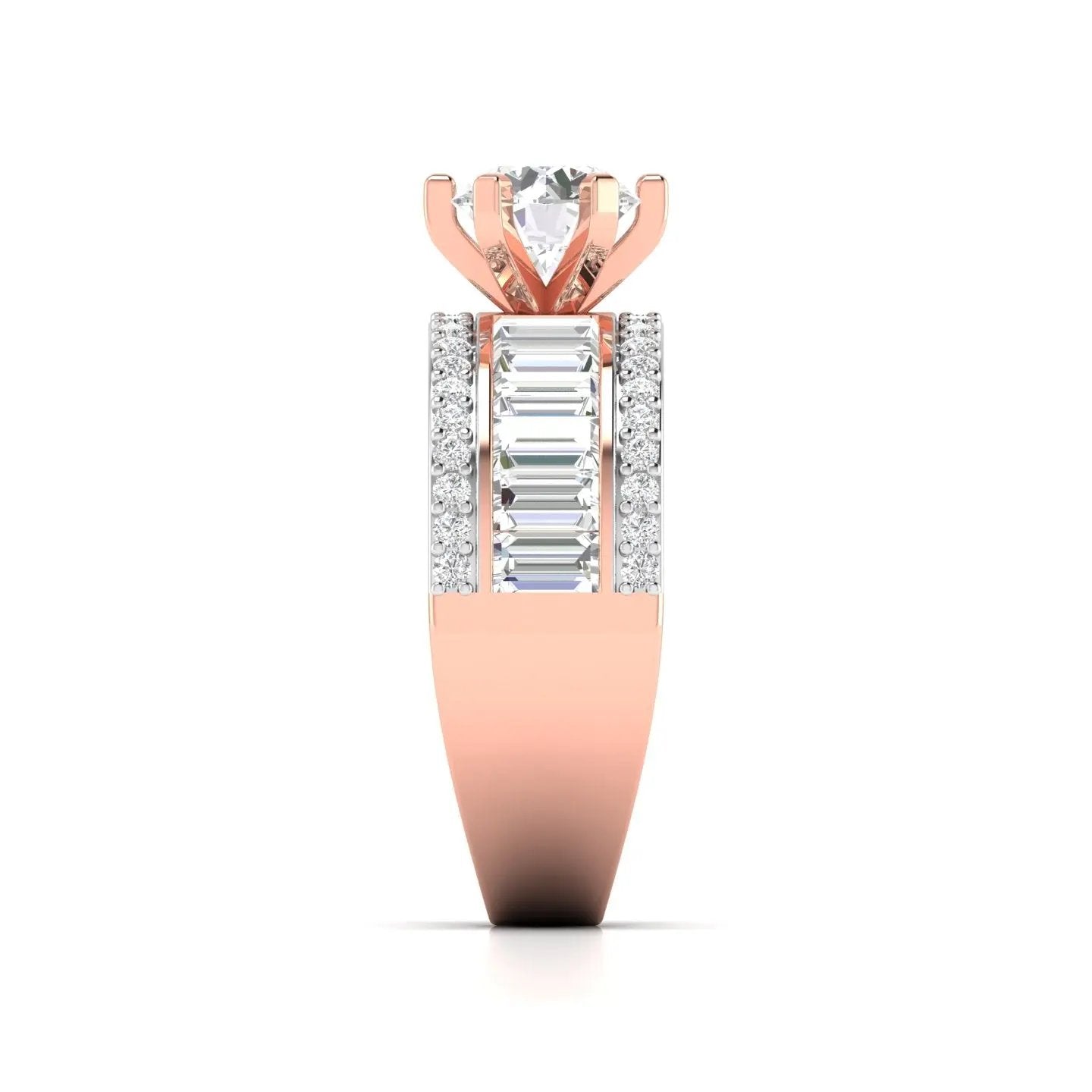 Elevate your elegance with this exquisite gold engagement ring, featuring a harmonious blend of round and baguette diamonds. Its sophisticated design offers a timeless statement piece perfect for marking life's most cherished moments or adding refined sparkle to any ensemble. Crafted to captivate, this ring seamlessly combines classic brilliance with modern flair.