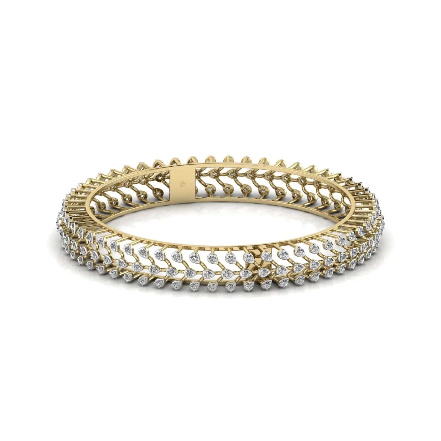 Discover refined elegance with this pair of round cut diamond bangles, designed to showcase the brilliance and clarity of lab grown stones. Their sleek, sophisticated design adds a touch of timeless luxury to any outfit, making them ideal for both daily wear and special moments. Crafted with precision, these bangles offer a sustainable and stunning alternative to traditional diamonds.