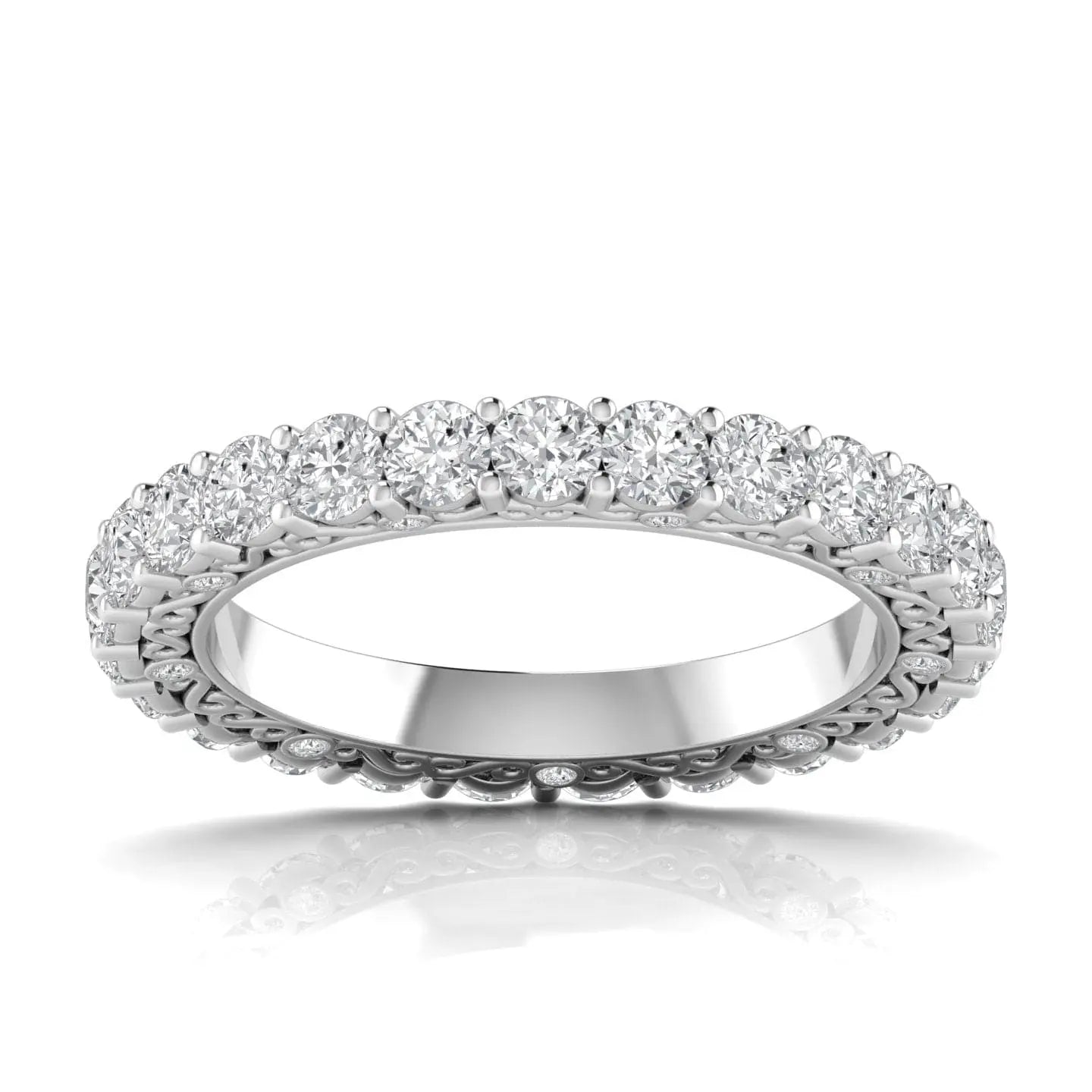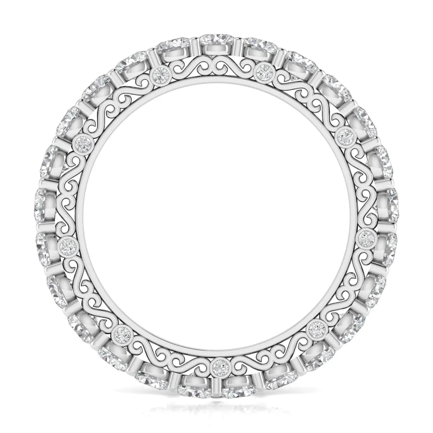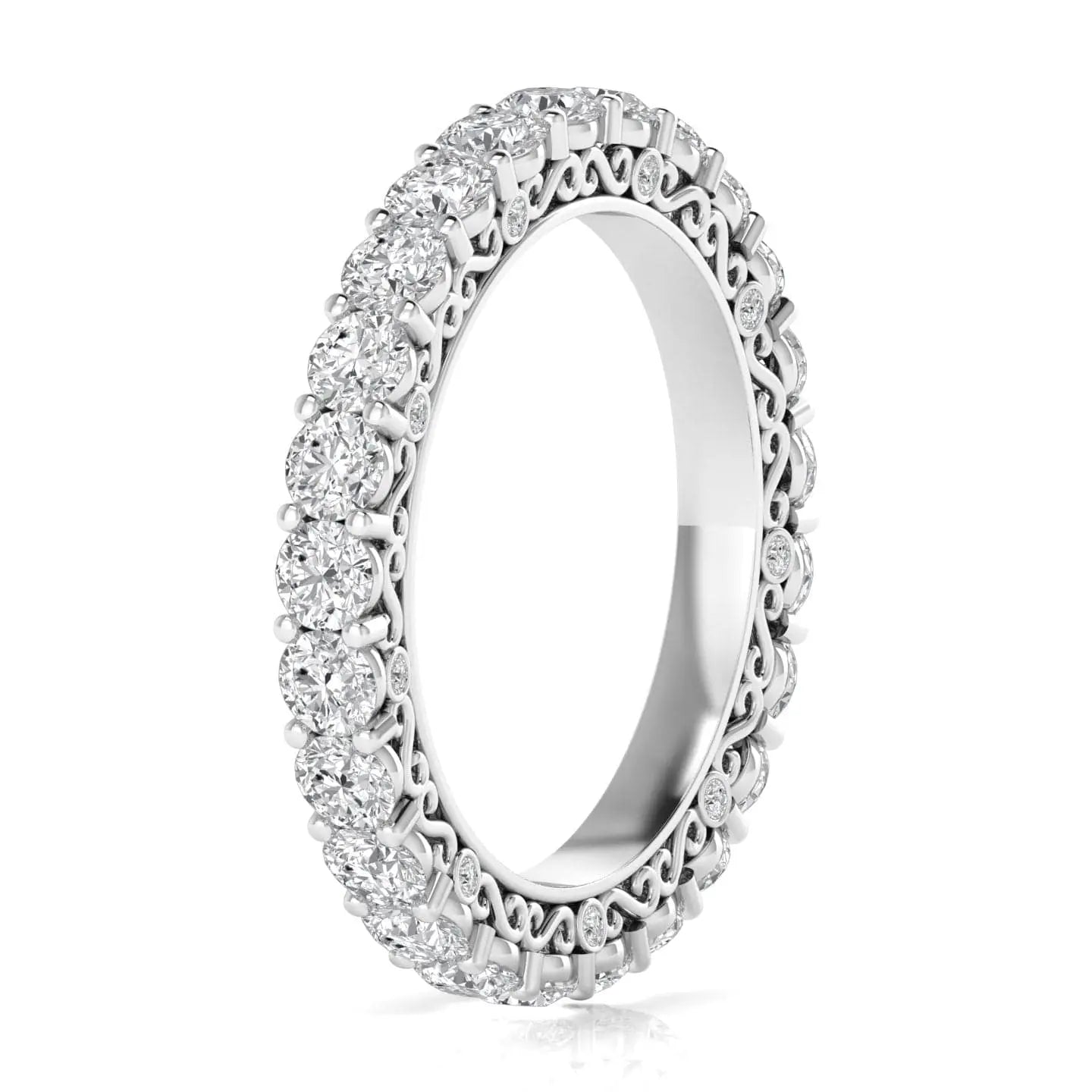 This exquisite Round Cut Lab Grown Diamond Eternity Ring showcases a continuous band of brilliantly crafted lab grown diamonds, offering a harmonious blend of ethical craftsmanship and timeless elegance. Its refined design highlights unparalleled sparkle and durability, making it a sophisticated symbol of everlasting style and commitment.