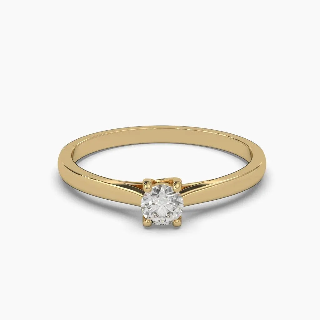 This Round Cut Small Diamond Ring showcases a stunning lab grown diamond, combining ethical craftsmanship with timeless elegance. Its delicate design adds a subtle sparkle, perfect for those seeking refined sophistication and sustainable luxury in one exquisite piece.