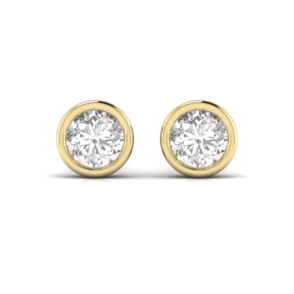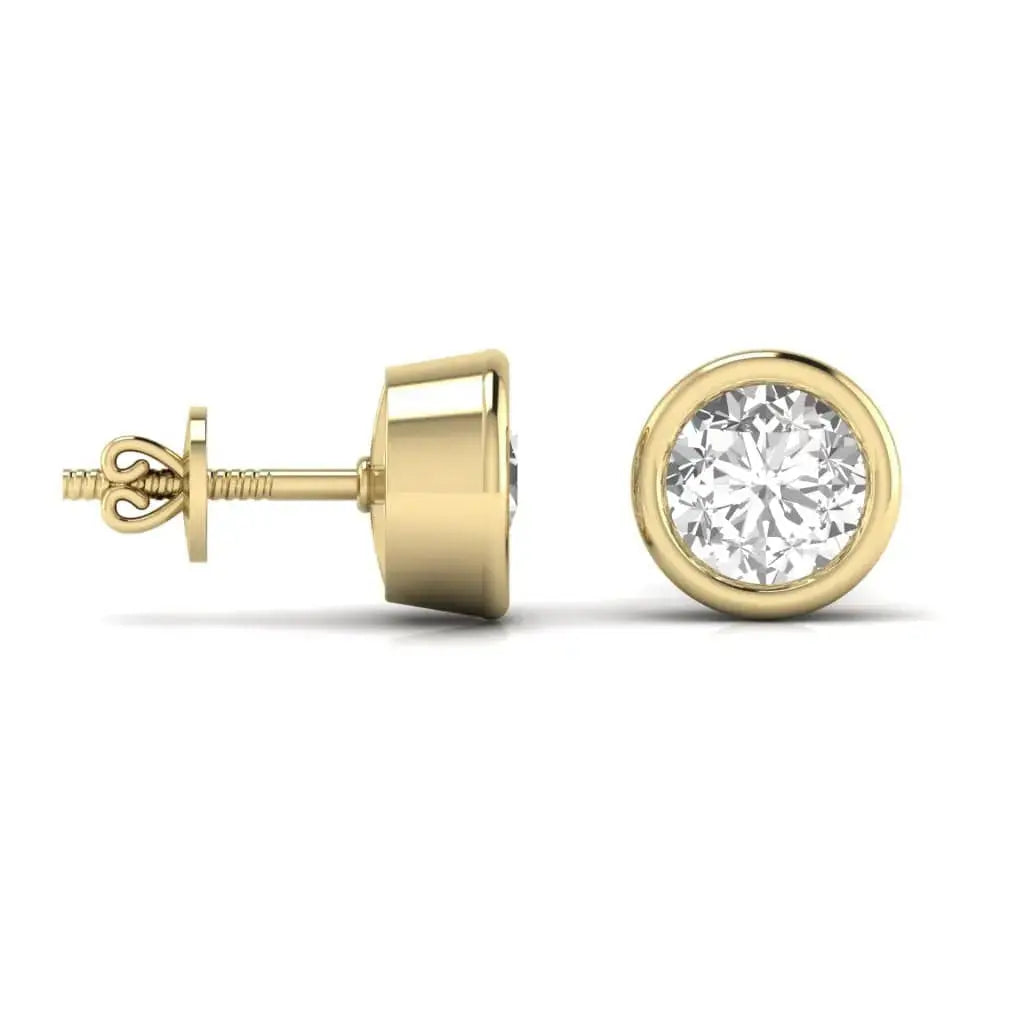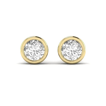 These 1.5 Carat Each Round Solitaire Diamond Bezel Earrings showcase stunning lab grown diamonds set in a sleek bezel design. Combining timeless elegance with modern craftsmanship, they offer exceptional brilliance and durability. Perfect for those seeking refined sophistication with a focus on sustainable luxury.