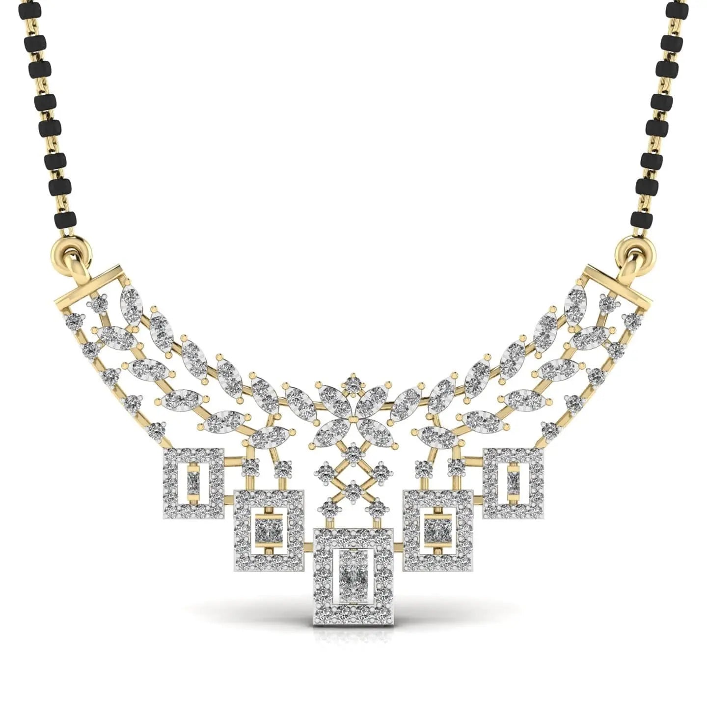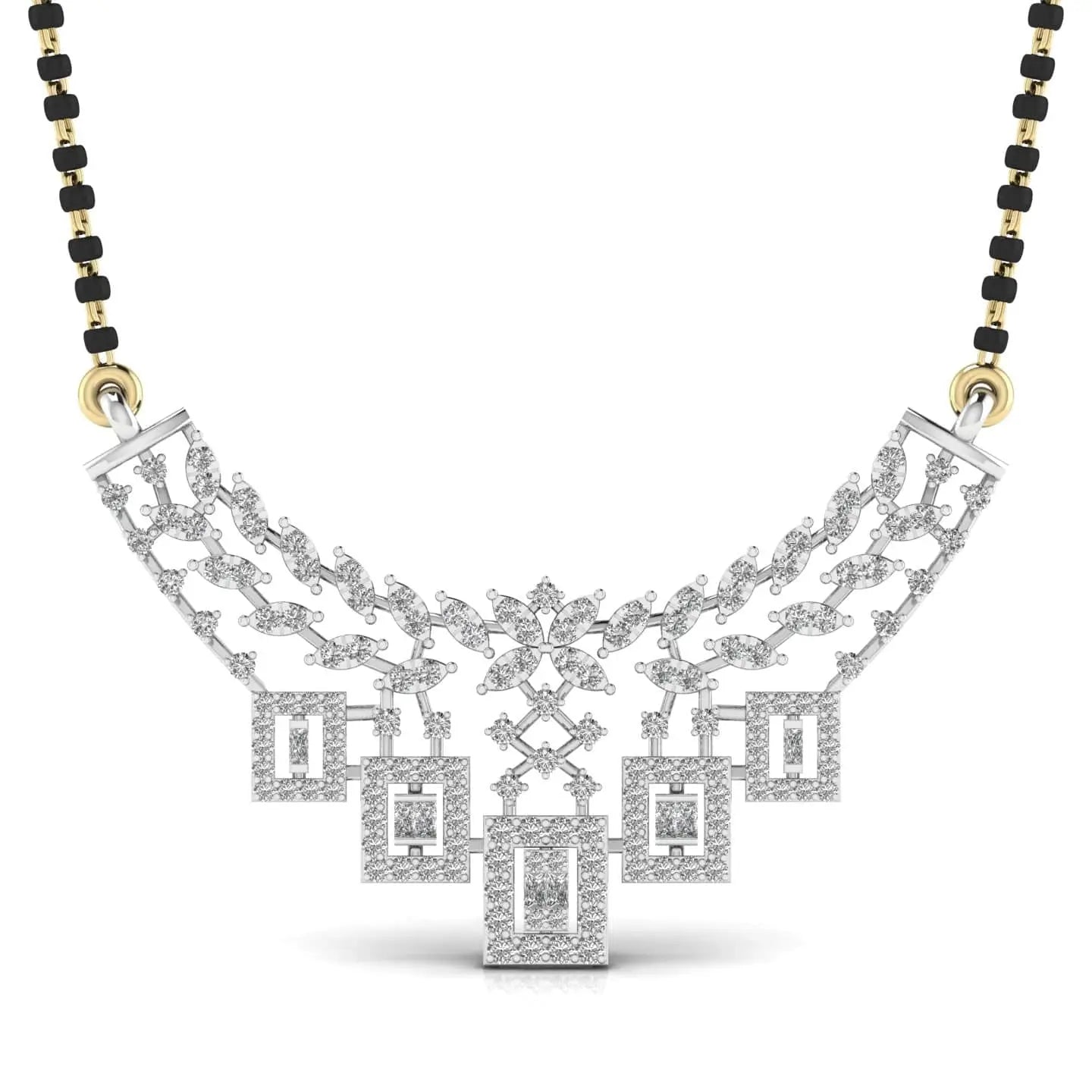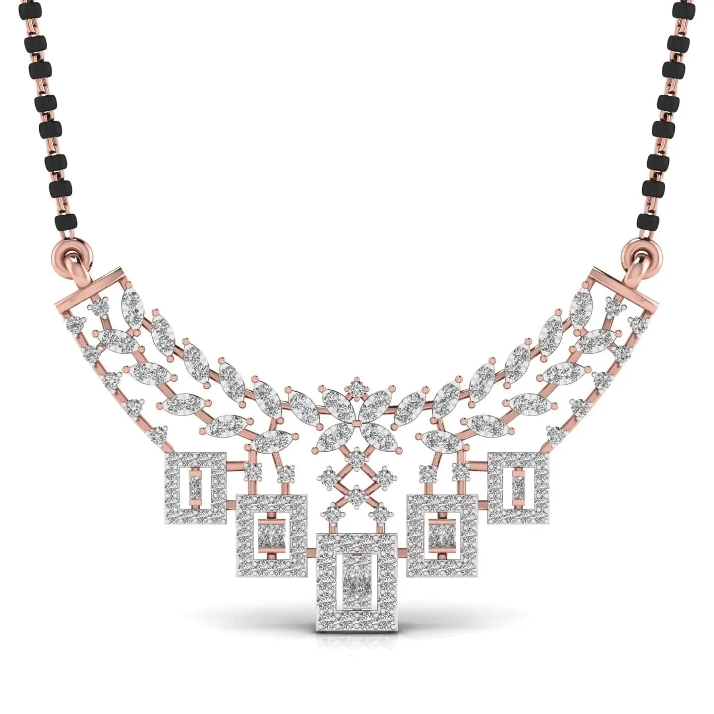This Round Diamond Mangal Sutra features stunning lab grown diamonds that combine ethical beauty with lasting brilliance. Crafted to celebrate tradition with a modern touch, it offers a sophisticated symbol of love and commitment, perfect for those who value elegance and sustainability.