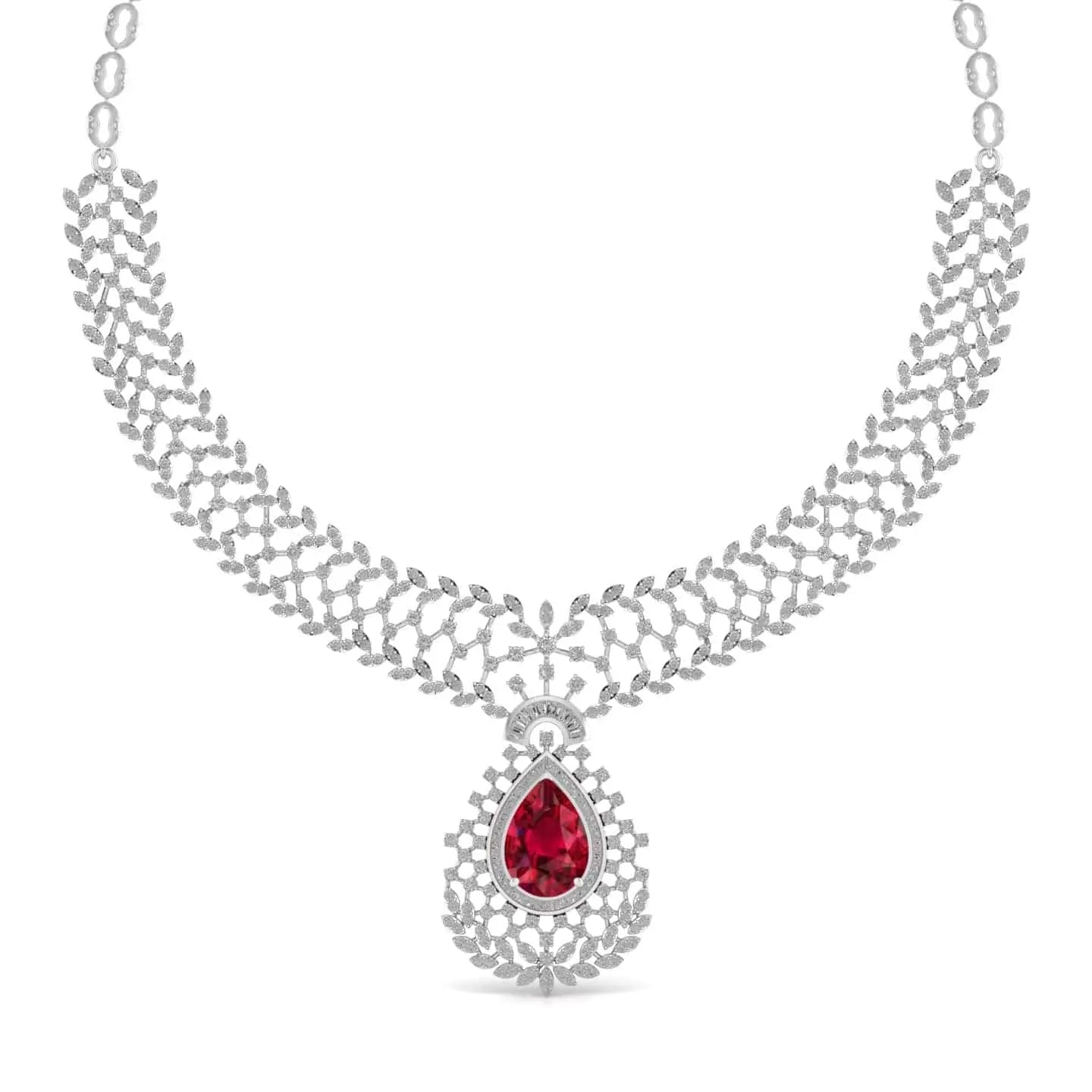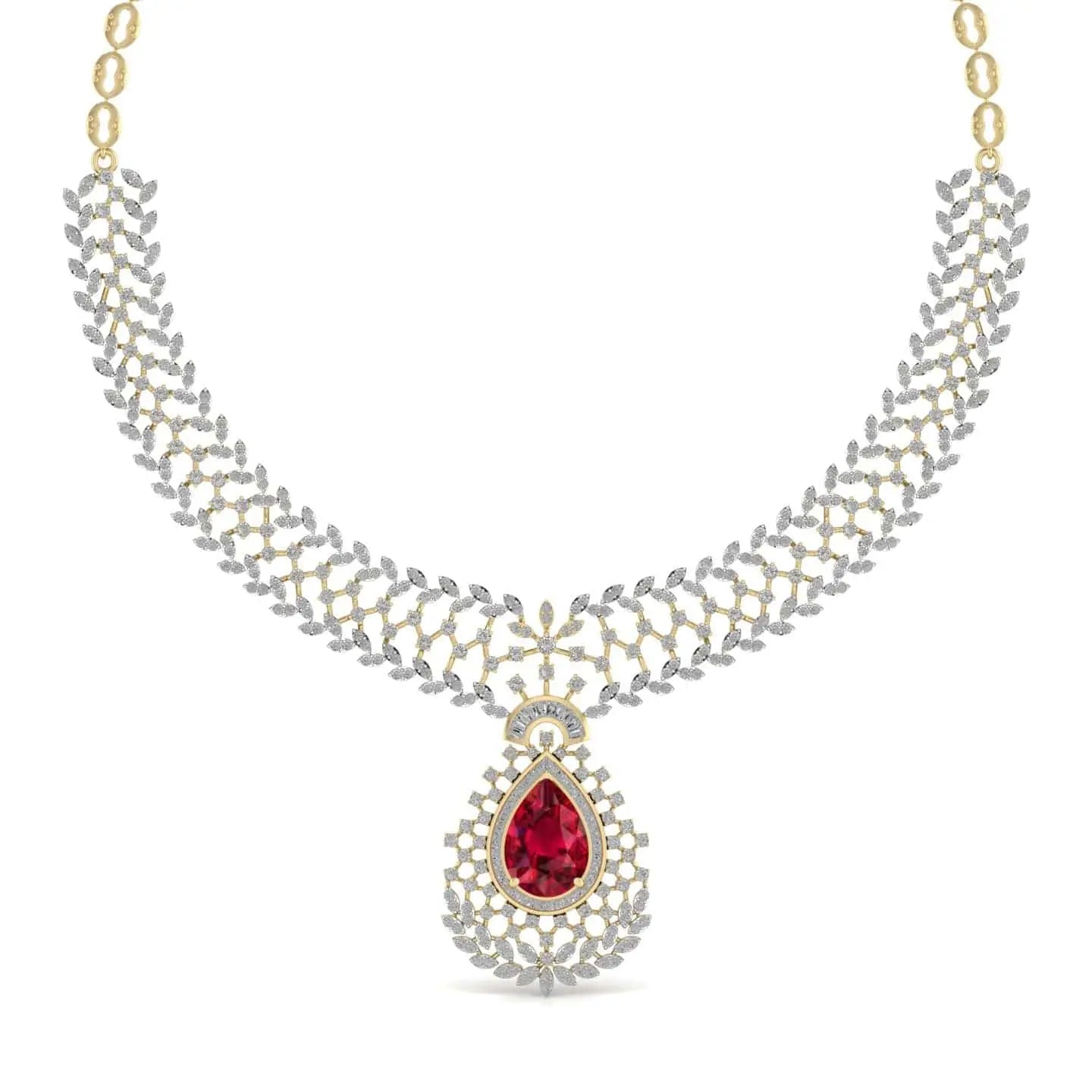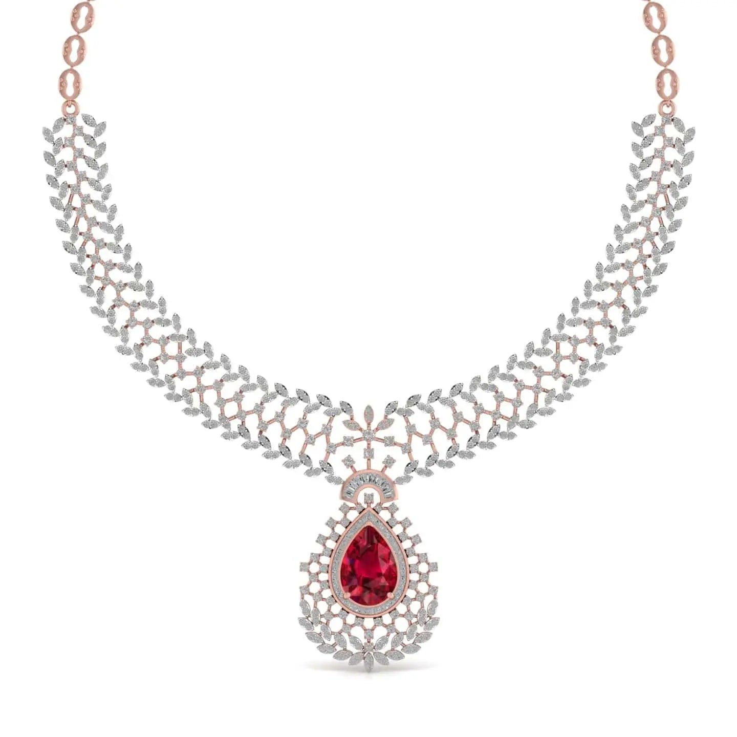 This Lab Grown Diamonds & Gem Stone Royal Design Necklace showcases the brilliance of ethically created diamonds combined with vibrant gemstones. Its refined design offers a sophisticated statement piece that enhances any ensemble with sustainable luxury and timeless elegance. Ideal for those who appreciate both beauty and responsibility in fine jewellery.