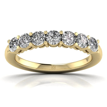 The Seven Sparkle Diamond Band showcases seven meticulously cut lab grown diamonds, delivering a radiant and refined shimmer. Crafted with precision, this ring blends timeless sophistication with an eco-conscious choice, perfect for those who value elegance and sustainability in equal measure.