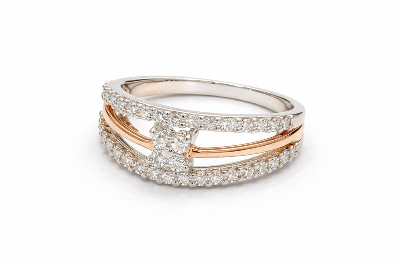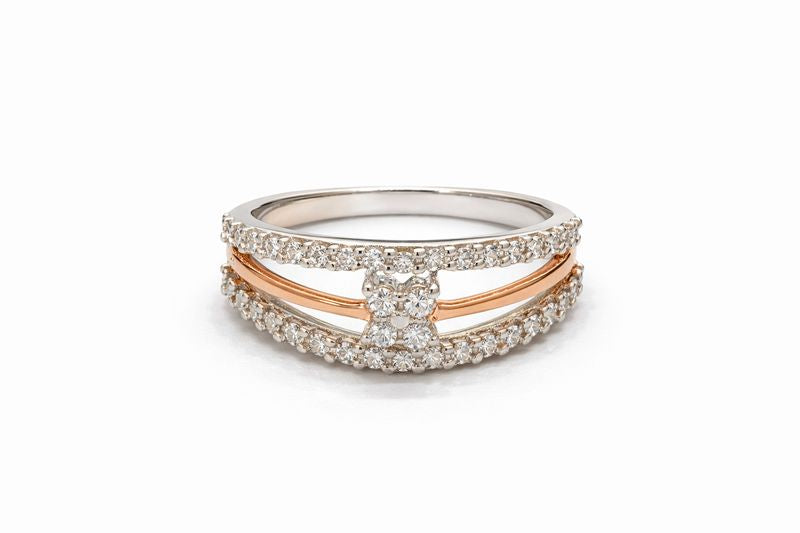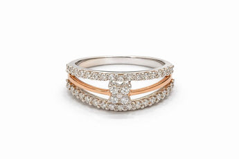 Solid 14KT Mixed Gold Diamond Ring - Pavé Set Triple Row Design