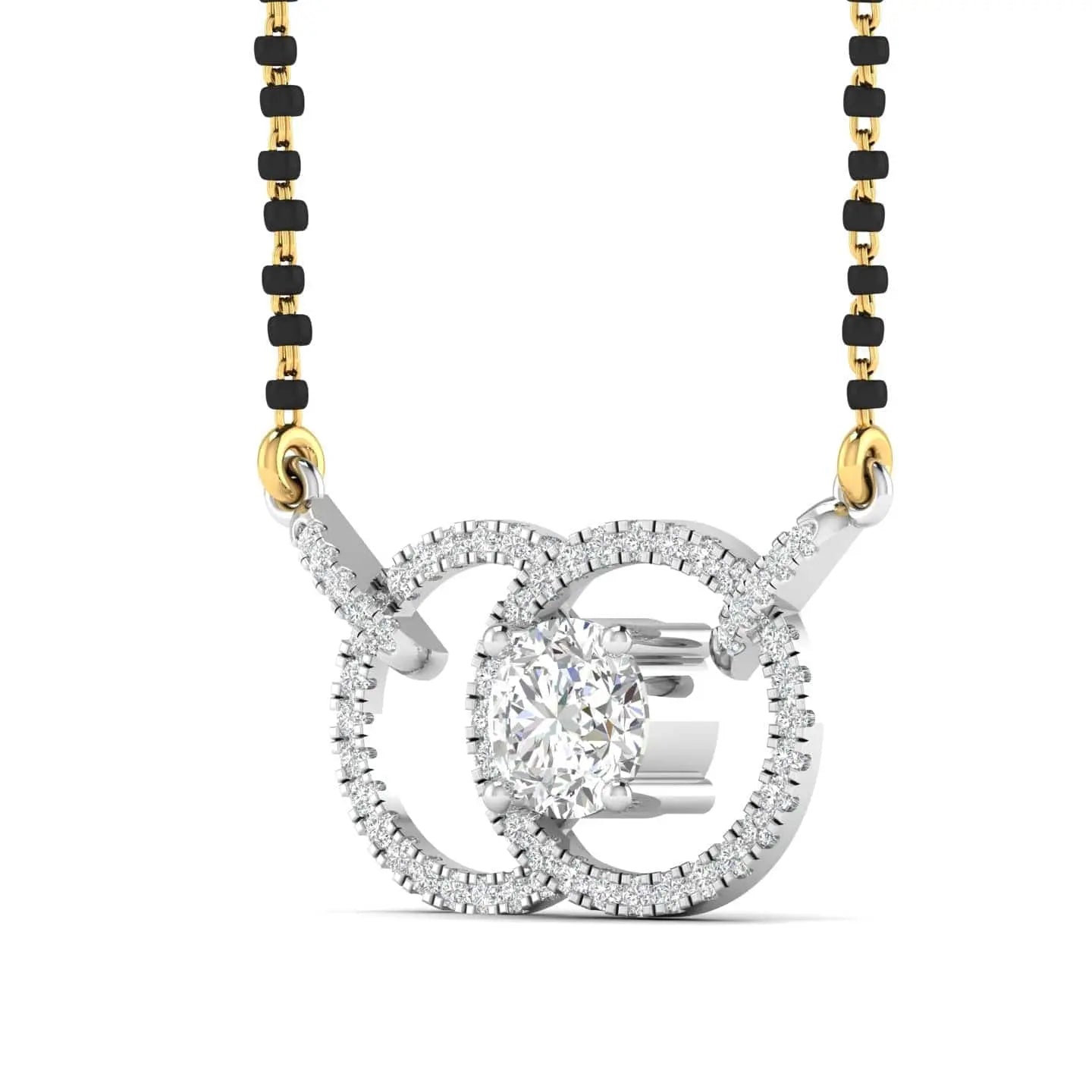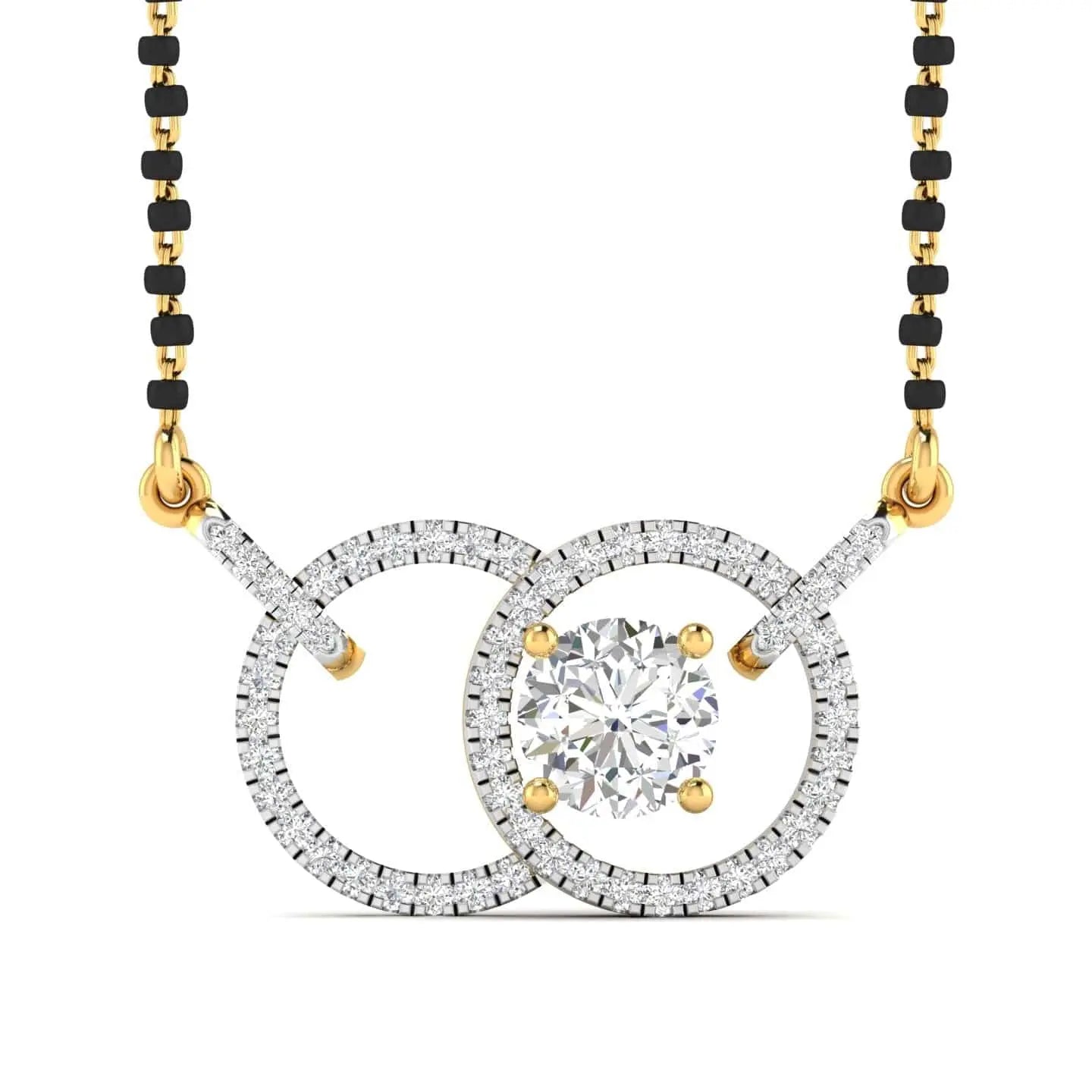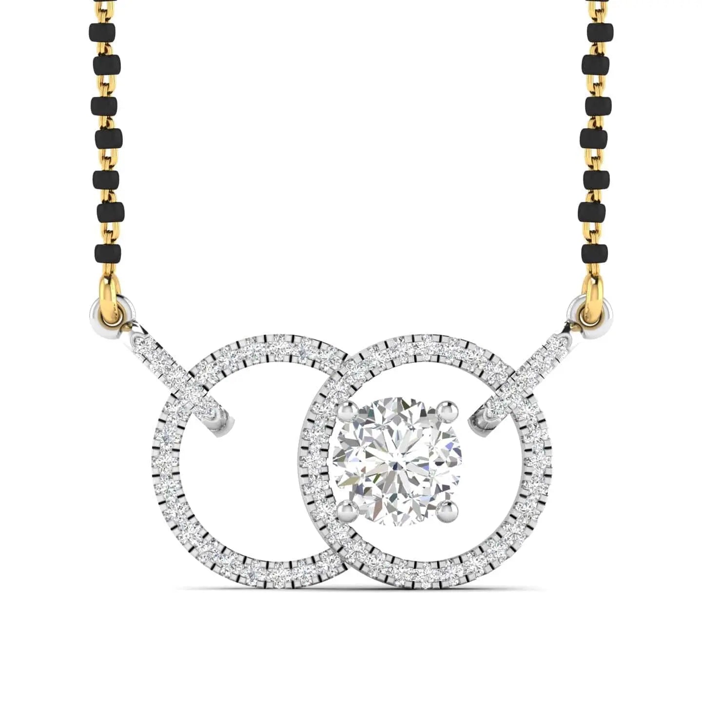 This Solitaire Diamond Mangalsutra features a stunning lab grown diamond, combining ethical craftsmanship with timeless design. Its elegant simplicity enhances any outfit, making it a perfect symbol of lasting commitment and refined style.