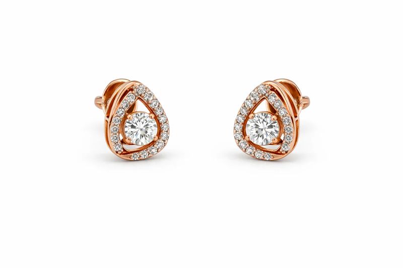 Sophisticated Triangle Geometric Diamond Studs in 14K Rose Gold