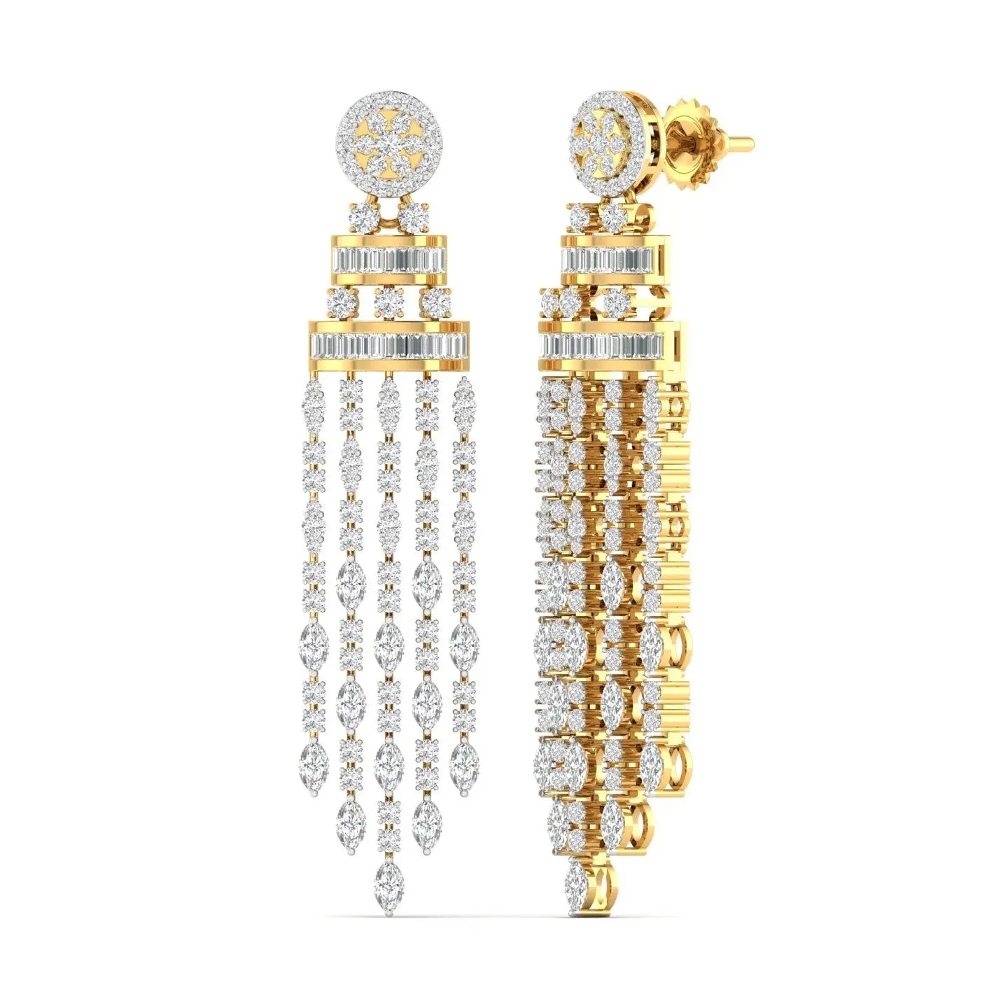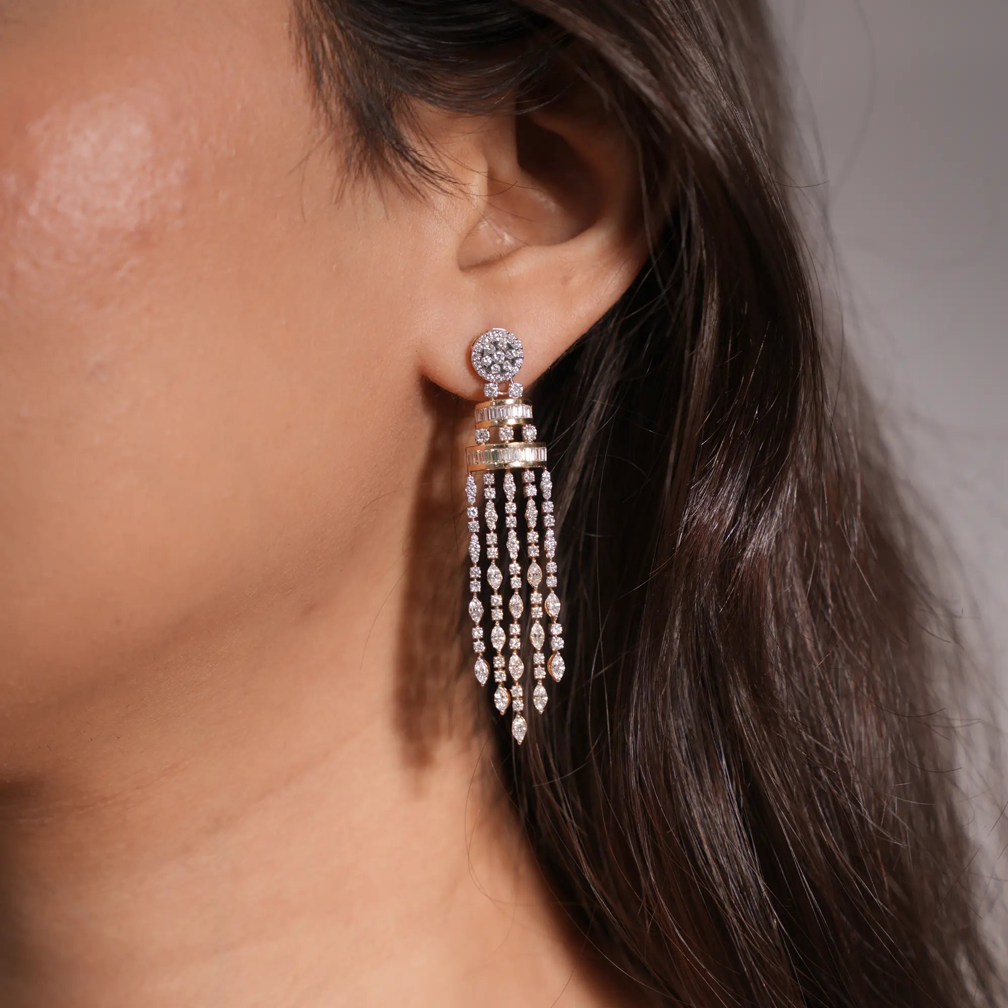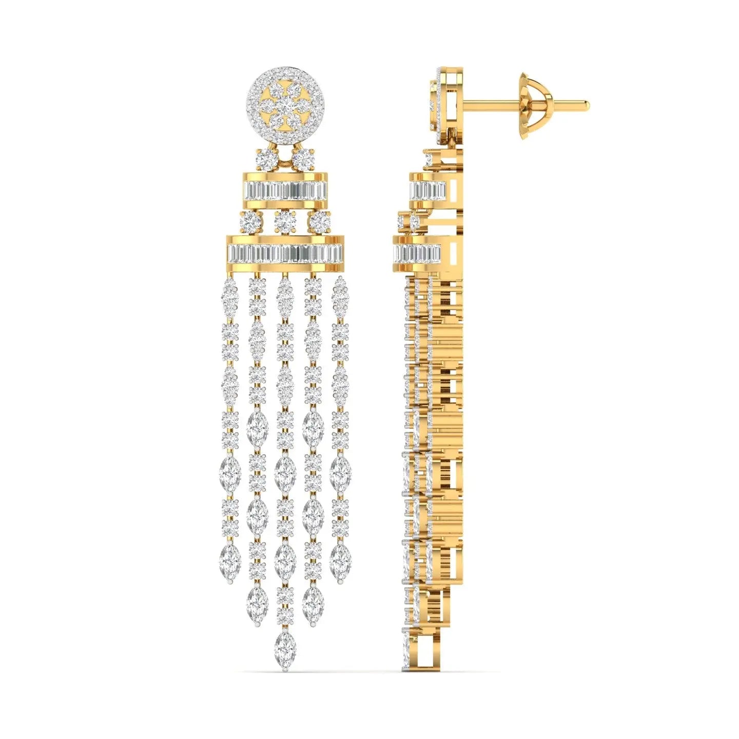 The Sparkfall Dangler Diamond Earrings showcase the brilliance of lab grown diamonds in a sophisticated design. These earrings offer a stunning sparkle with an ethical and sustainable origin, perfect for adding a touch of refined elegance to any ensemble. Their graceful movement and radiant shine make them an exquisite choice for those who appreciate both beauty and responsibility.