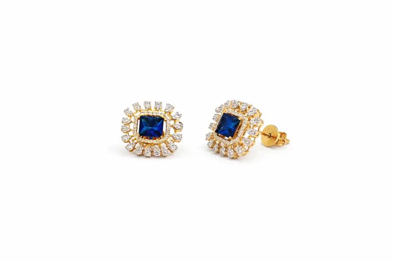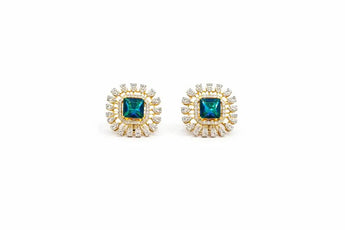 Square Blue Colostone and Diamond Halo Earring