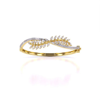Elevate your elegance with this Sterling Leaf Design Diamond Bangle, featuring exquisite lab grown diamonds that offer brilliance with a sustainable touch. Crafted in sterling silver, its delicate leaf motif adds a refined natural charm, making it a timeless accessory for any sophisticated ensemble. Perfect for those who appreciate ethical luxury and subtle sparkle.
