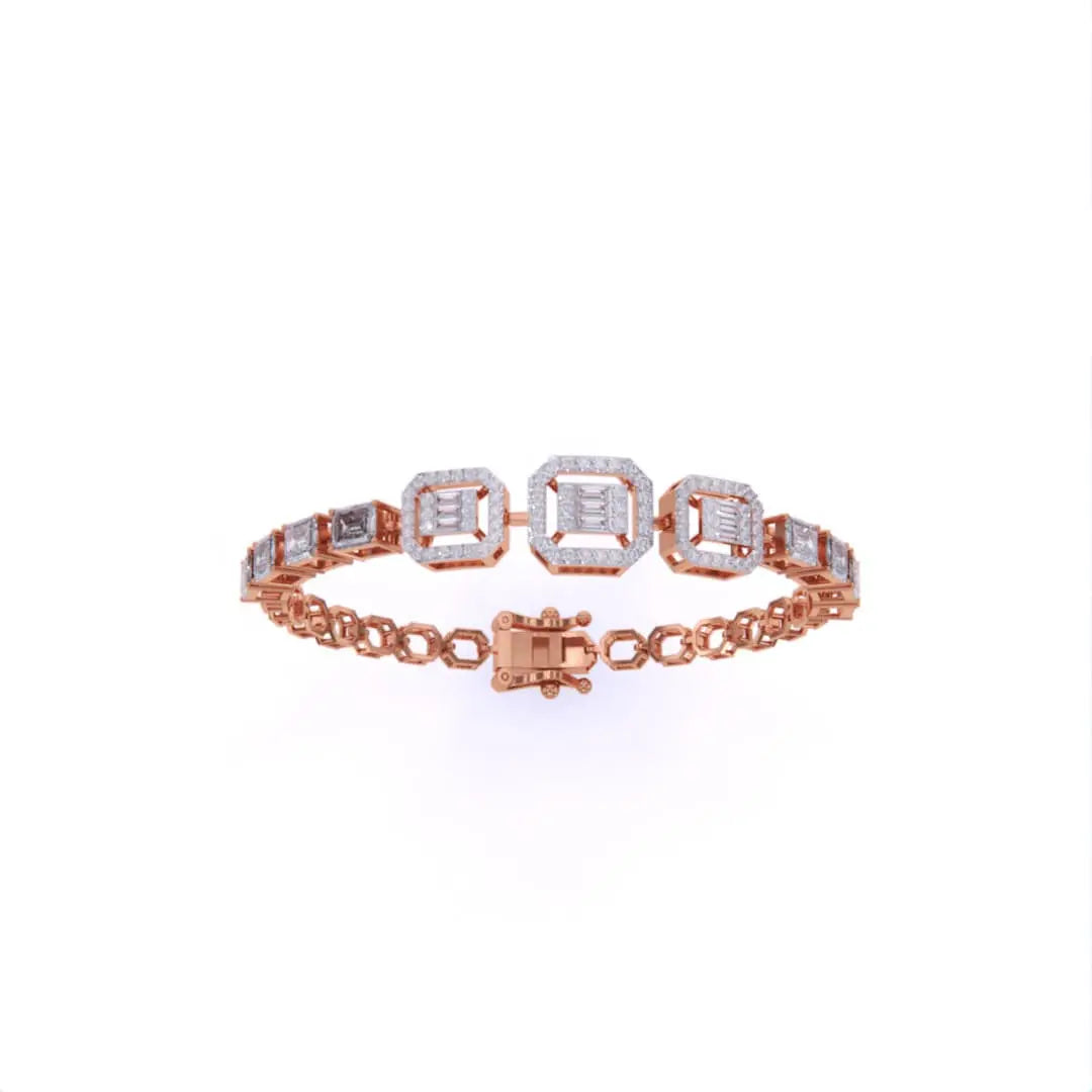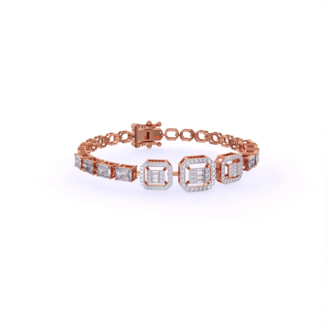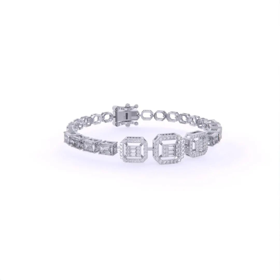 The Structured Square Diamond Bracelet showcases exquisite lab grown diamonds set in a sleek, geometric design. This piece combines sustainable luxury with refined craftsmanship, offering a sophisticated accessory that enhances any ensemble with subtle brilliance and modern elegance.