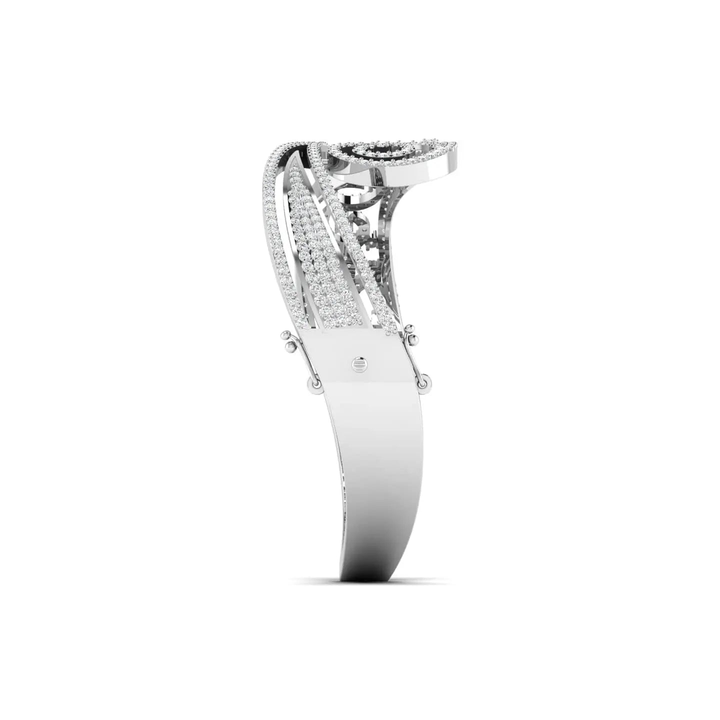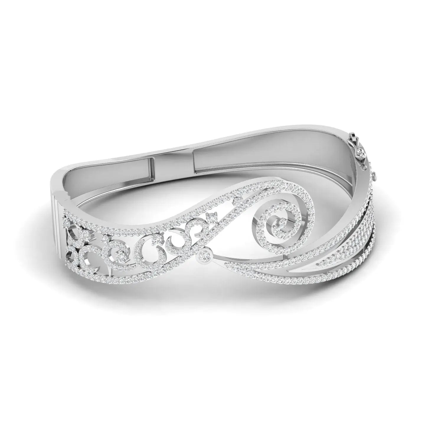 The Diamond Swirl Bangle showcases the brilliance of lab grown diamonds in a sleek, sophisticated design. Its elegant swirl pattern adds a touch of refined sparkle, perfect for enhancing any outfit with understated luxury. This bangle offers a timeless accessory that combines ethical craftsmanship with lasting beauty.