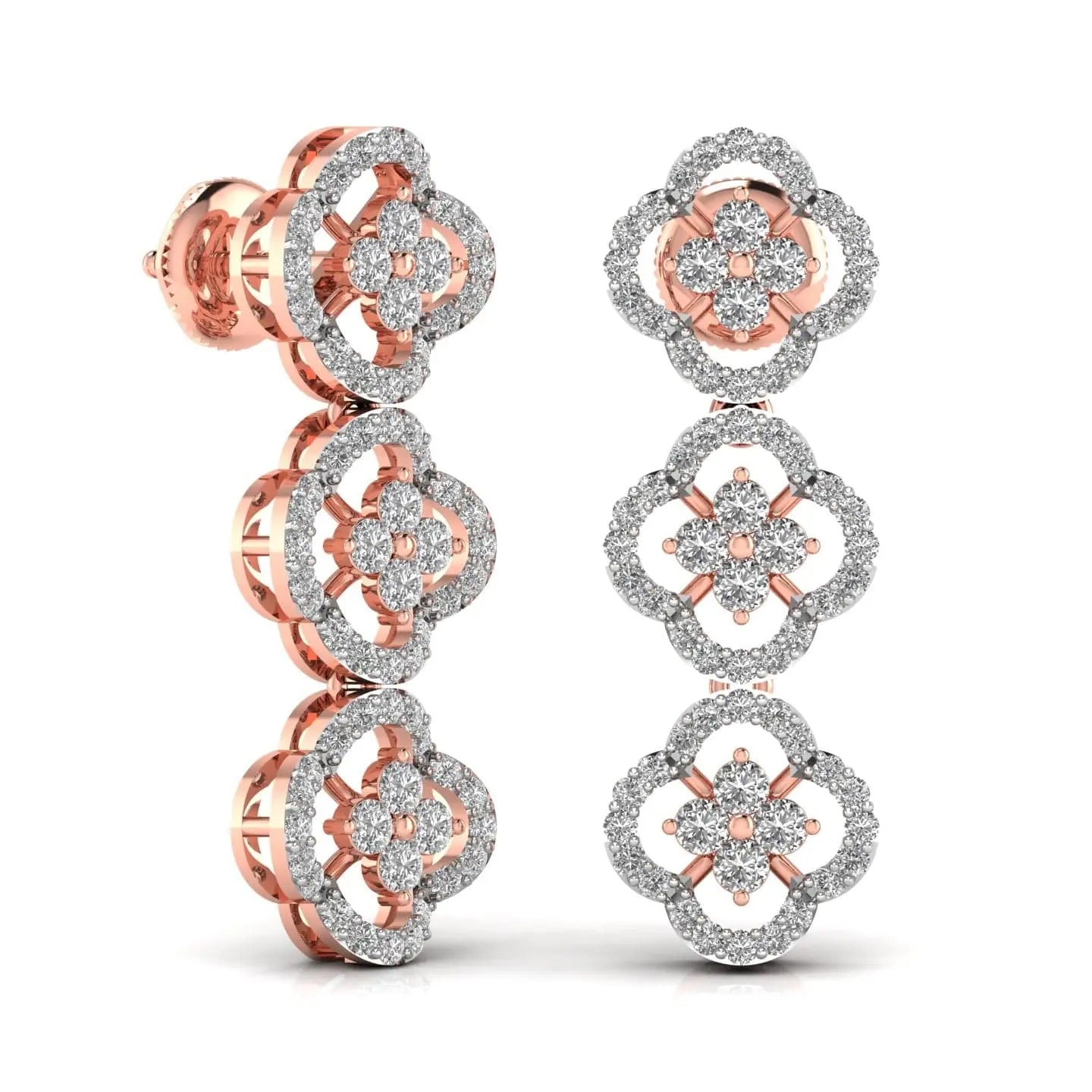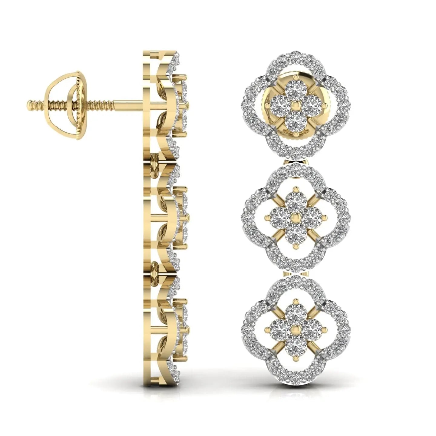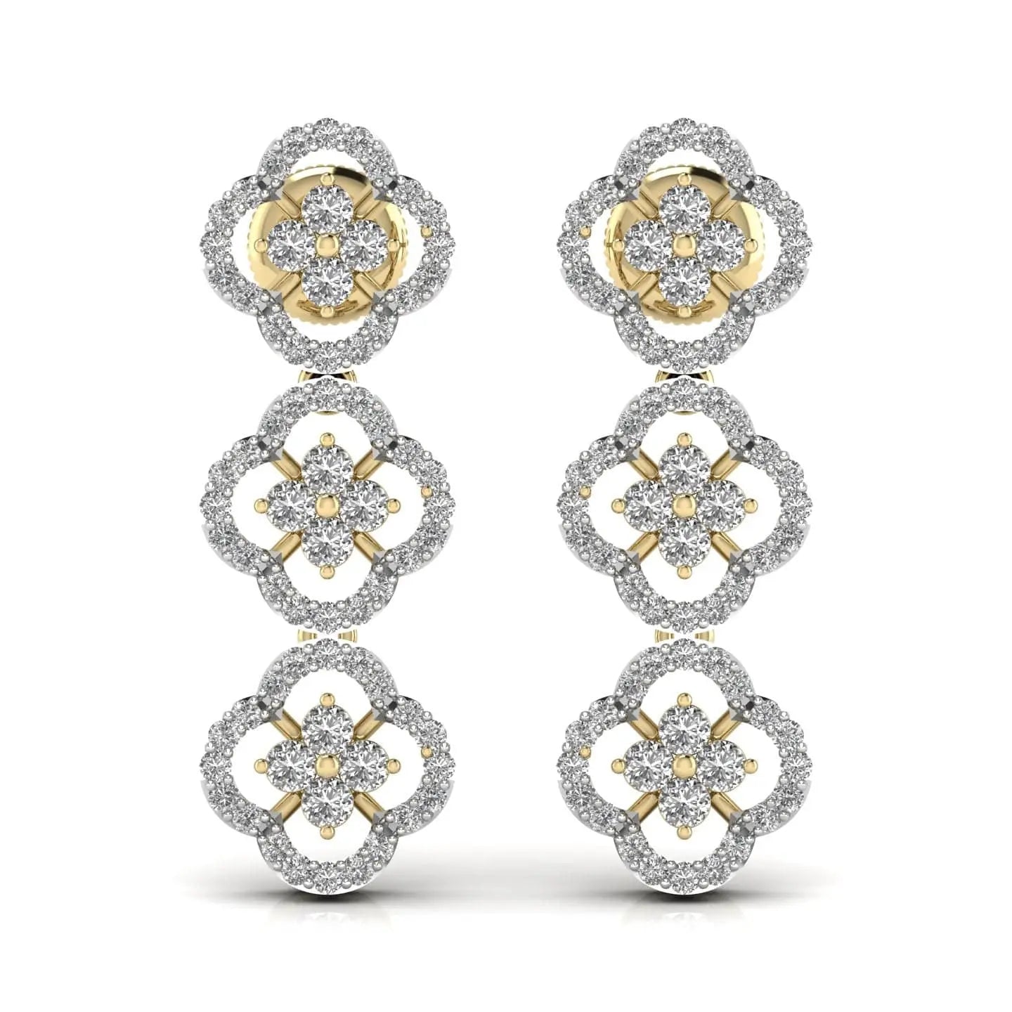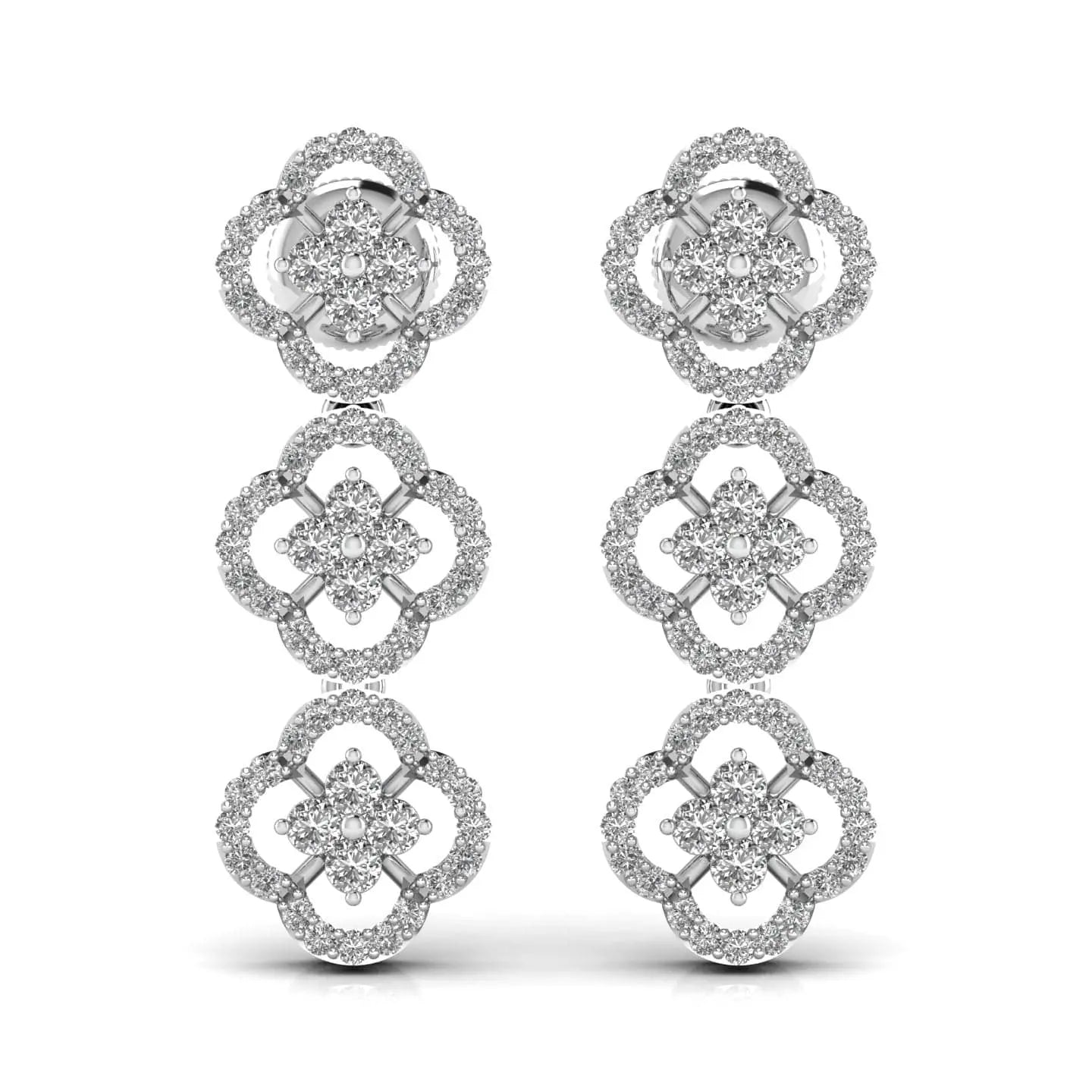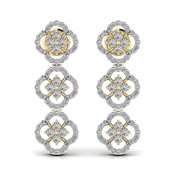 These round cut diamond three steps drop earrings feature expertly crafted lab grown diamonds, ensuring brilliance and sustainability. Their elegant design adds a refined sparkle to any ensemble, perfect for sophisticated occasions or elevating everyday style. With ethical sourcing and timeless appeal, these earrings offer a graceful and responsible choice in fine jewelry.
