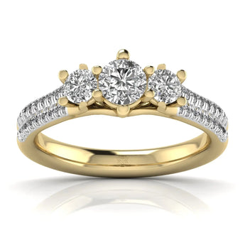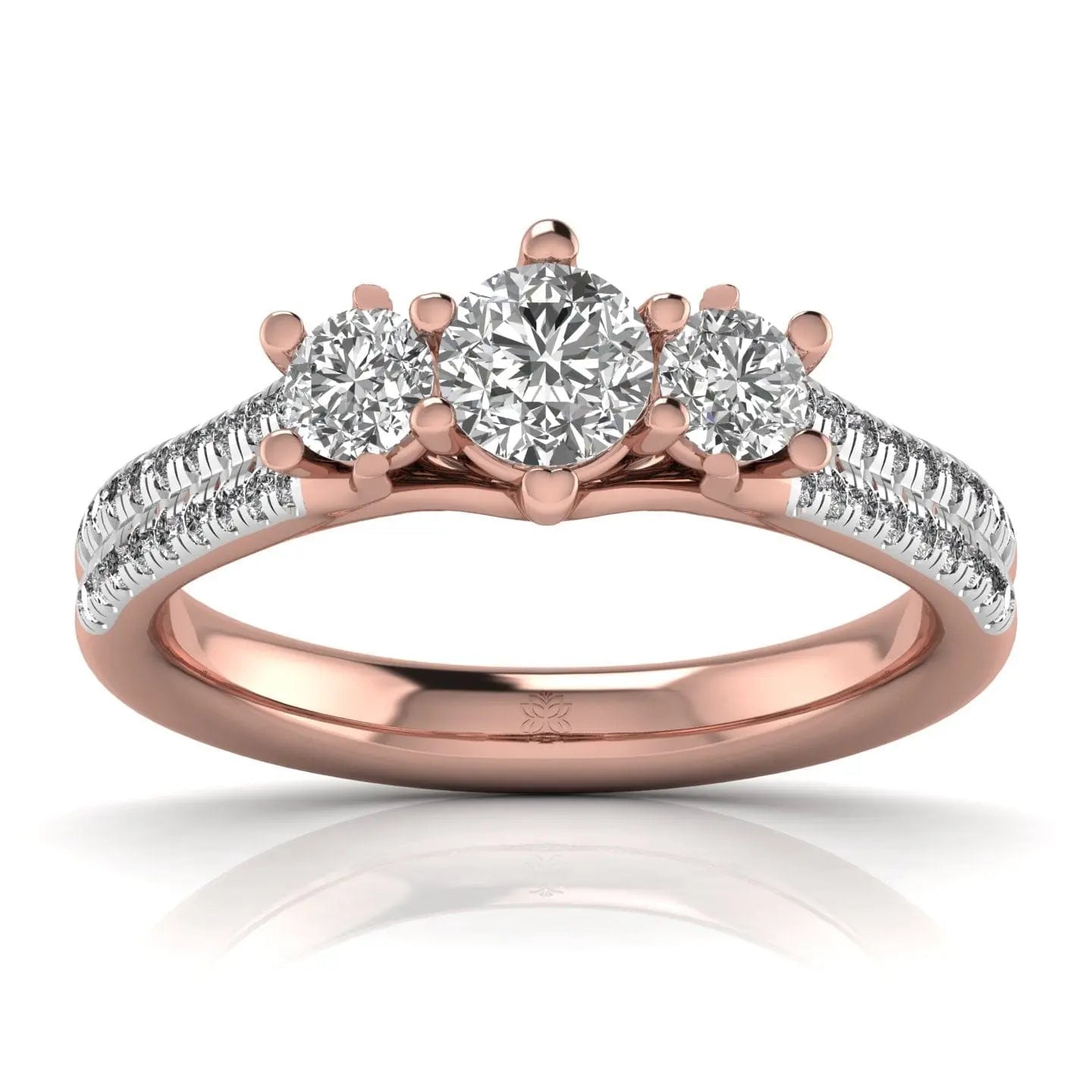 The Trinity Gleam Diamond Band showcases the brilliance of lab grown diamonds in a sleek, sophisticated design. This ring offers a stunning, ethical alternative to traditional diamonds, combining modern elegance with responsible craftsmanship. Perfect for those who value both style and sustainability.