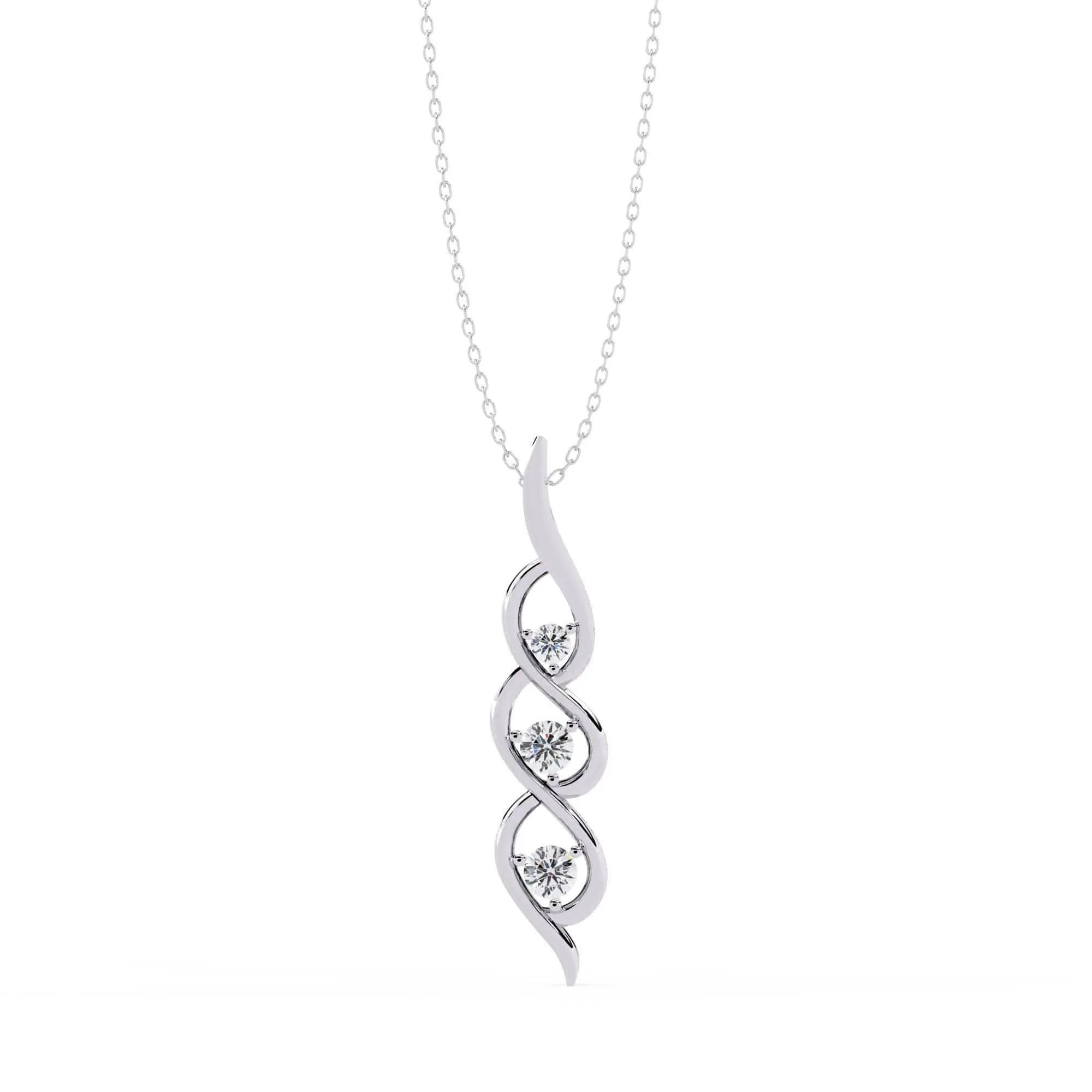 This three-stone diamond drop pendant showcases the brilliance of lab grown diamonds, combining ethical craftsmanship with timeless sophistication. Its elegant design enhances any ensemble, offering a refined sparkle that complements both formal and everyday styles.