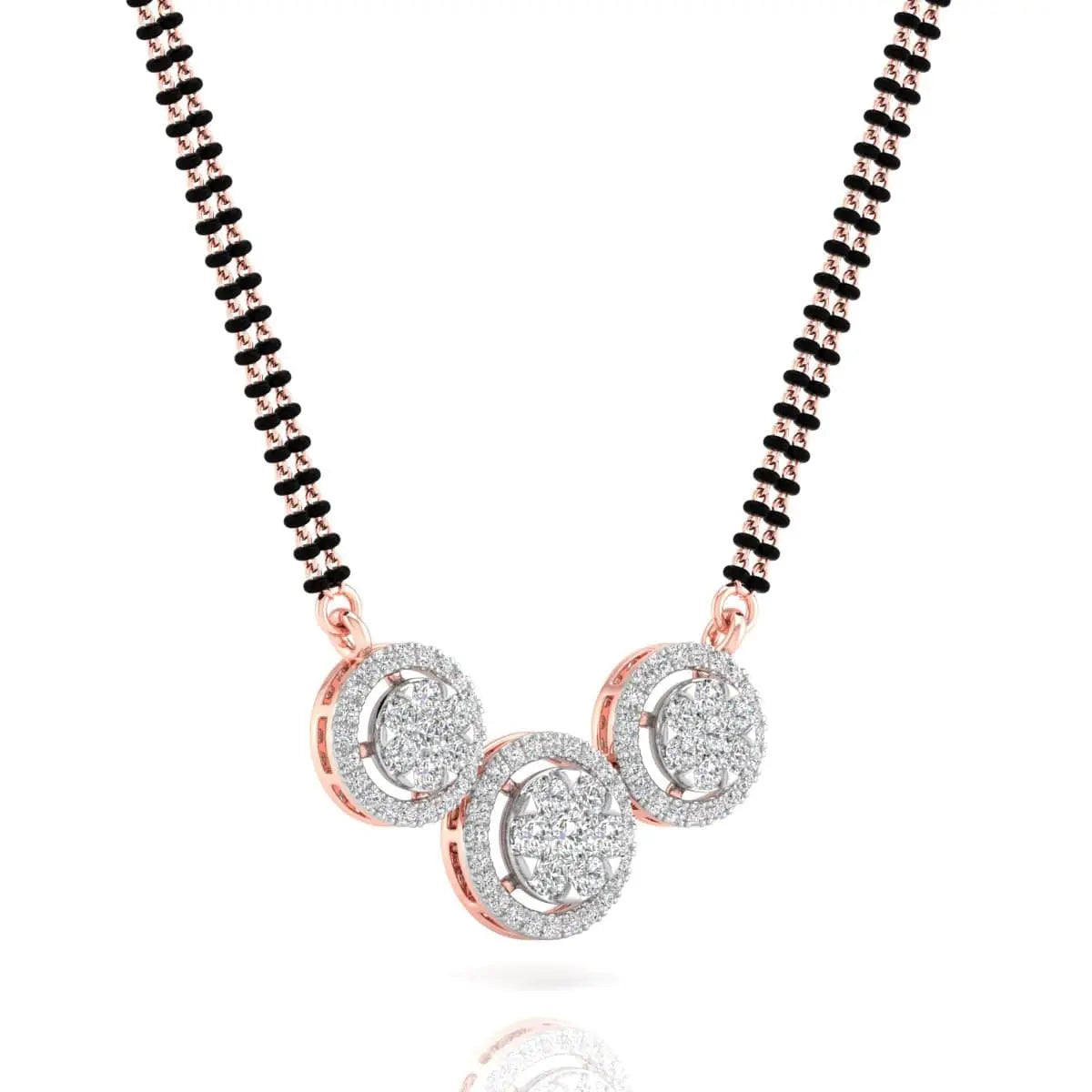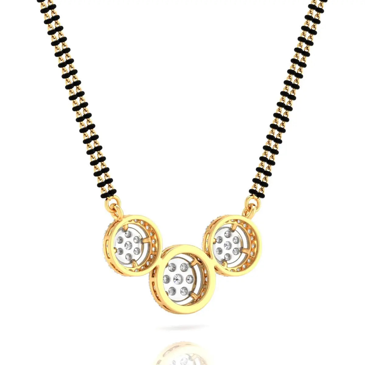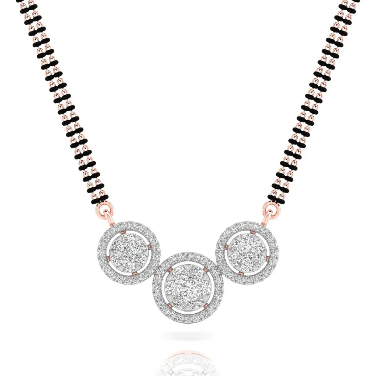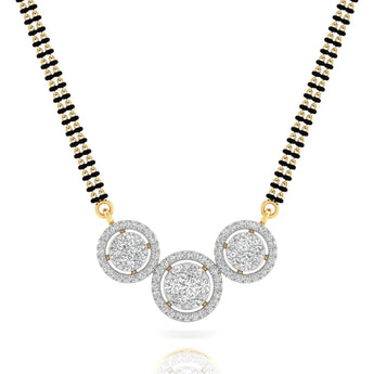 The Triple Circle Round Diamond Mangalsutra showcases the brilliance of lab grown diamonds in a refined design. This sophisticated piece symbolizes eternal love with its elegant triple circle motif, blending tradition with contemporary style. Perfect for those who appreciate ethical luxury and timeless beauty.