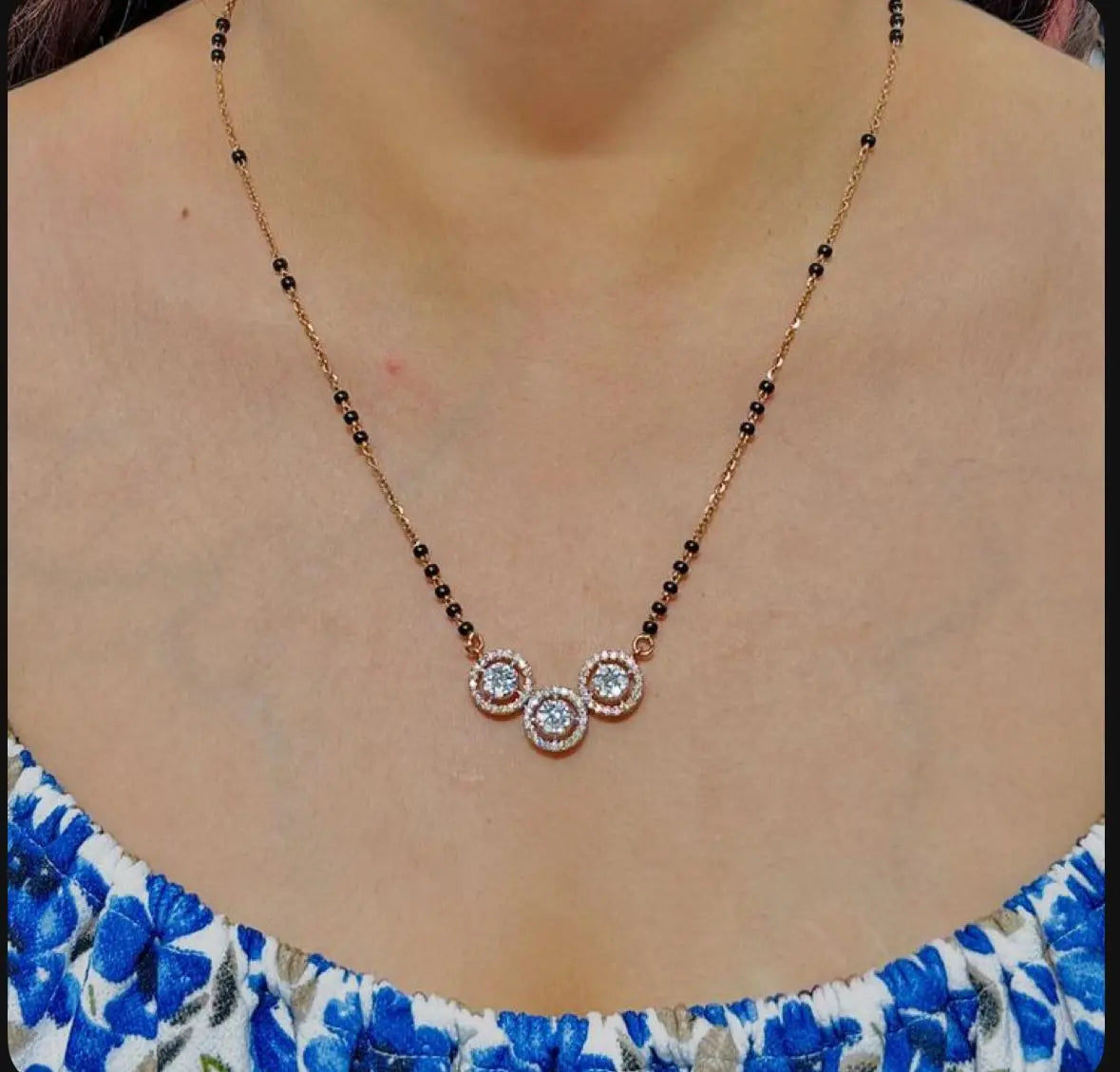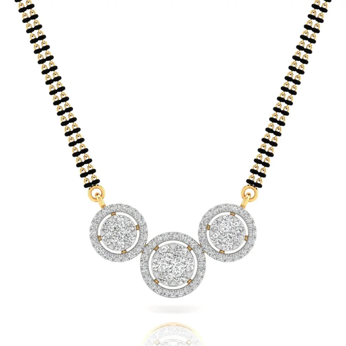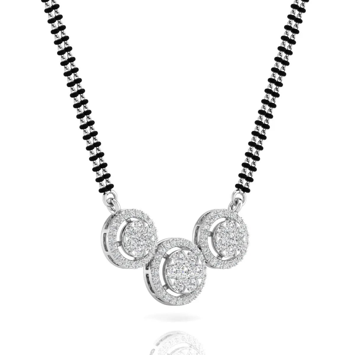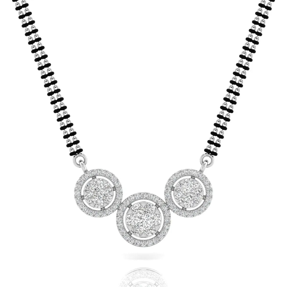 The Triple Circle Round Diamond Mangalsutra showcases the brilliance of lab grown diamonds in a refined design. This sophisticated piece symbolizes eternal love with its elegant triple circle motif, blending tradition with contemporary style. Perfect for those who appreciate ethical luxury and timeless beauty.