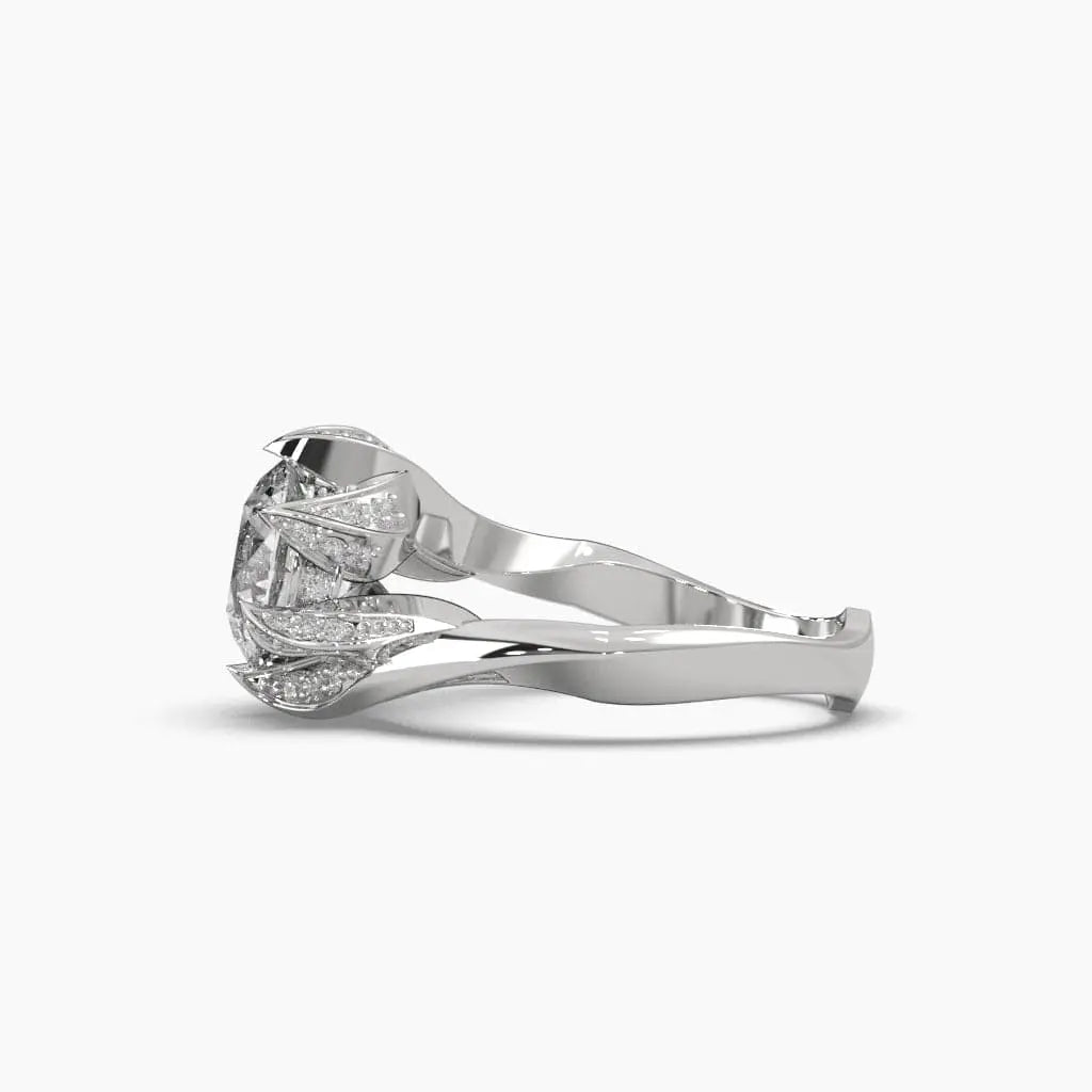 This Round Cut Diamond Twisted Ring features a brilliant lab-grown diamond set in a gracefully twisted band, blending contemporary design with ethical elegance. Its sophisticated style makes it an exquisite choice for those seeking timeless beauty with a responsible touch.