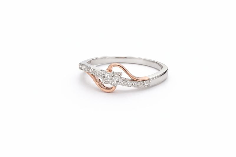 Twisted Two-Tone Diamond Ring with Pavé Band for Everyday Wear
