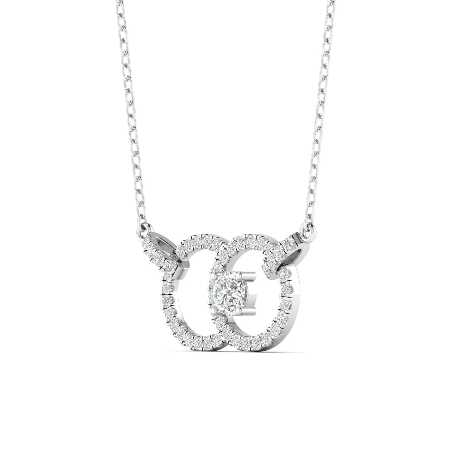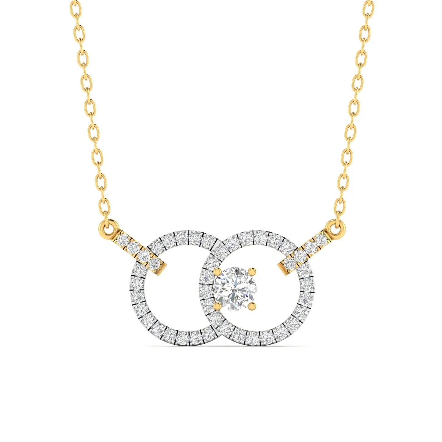 This Two Circle Diamond Gold Pendant showcases the brilliance of lab grown diamonds set in elegant gold. Its intertwined circles design represents harmony and timeless elegance, making it a perfect accessory for sophisticated occasions. Crafted with ethical materials, this pendant combines luxury with conscious style.