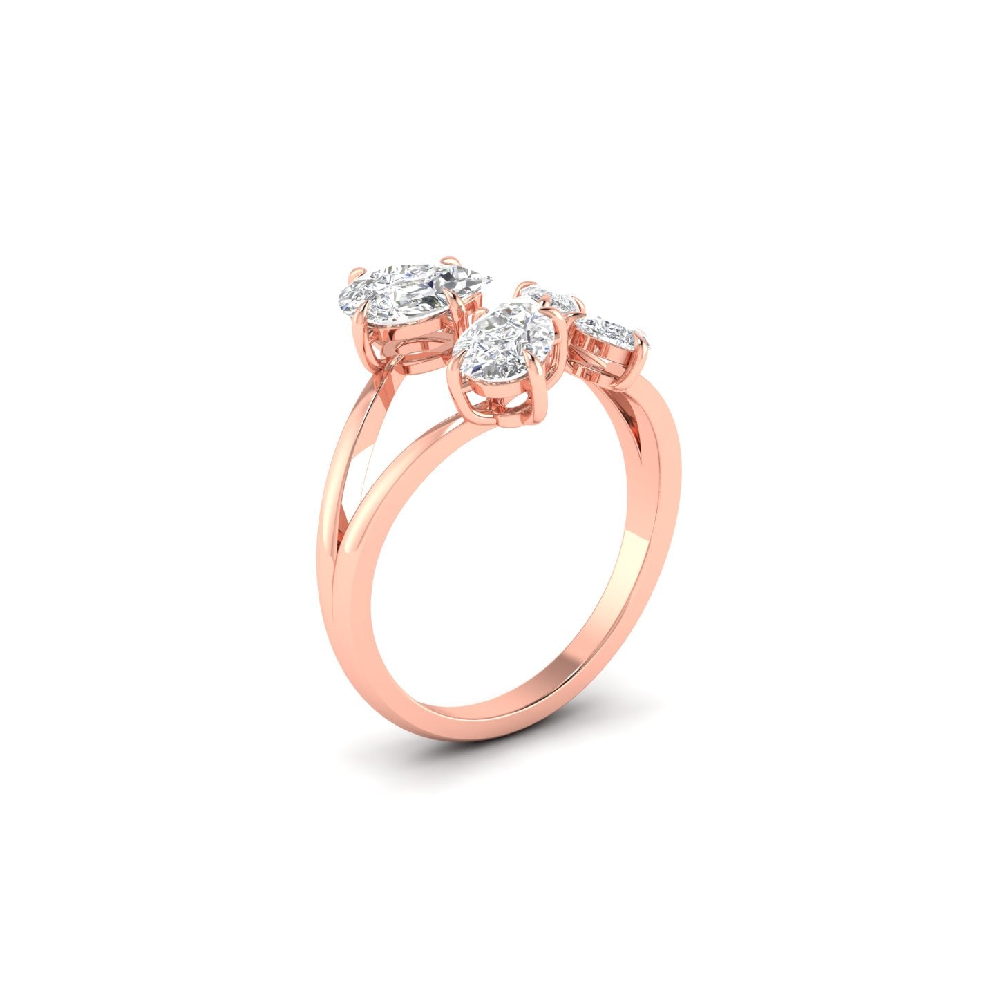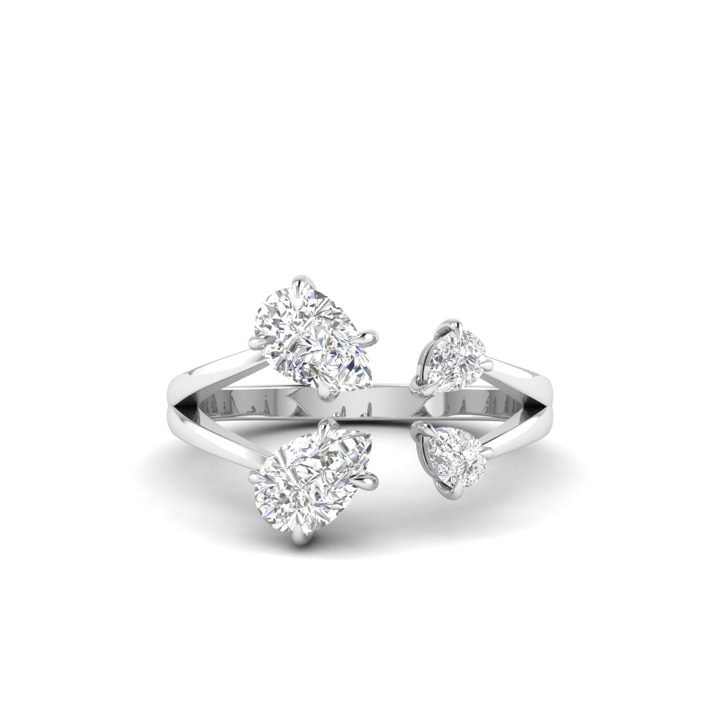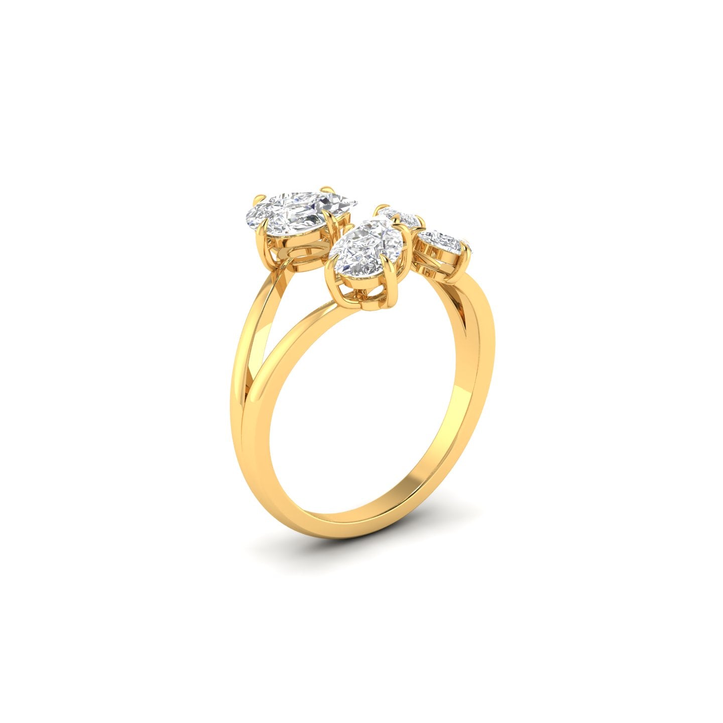 The elegant pear-shaped diamonds create a sophisticated silhouette that catches light beautifully from every angle. This timeless design combines classic romance with modern elegance, making it a meaningful choice for your special moment.