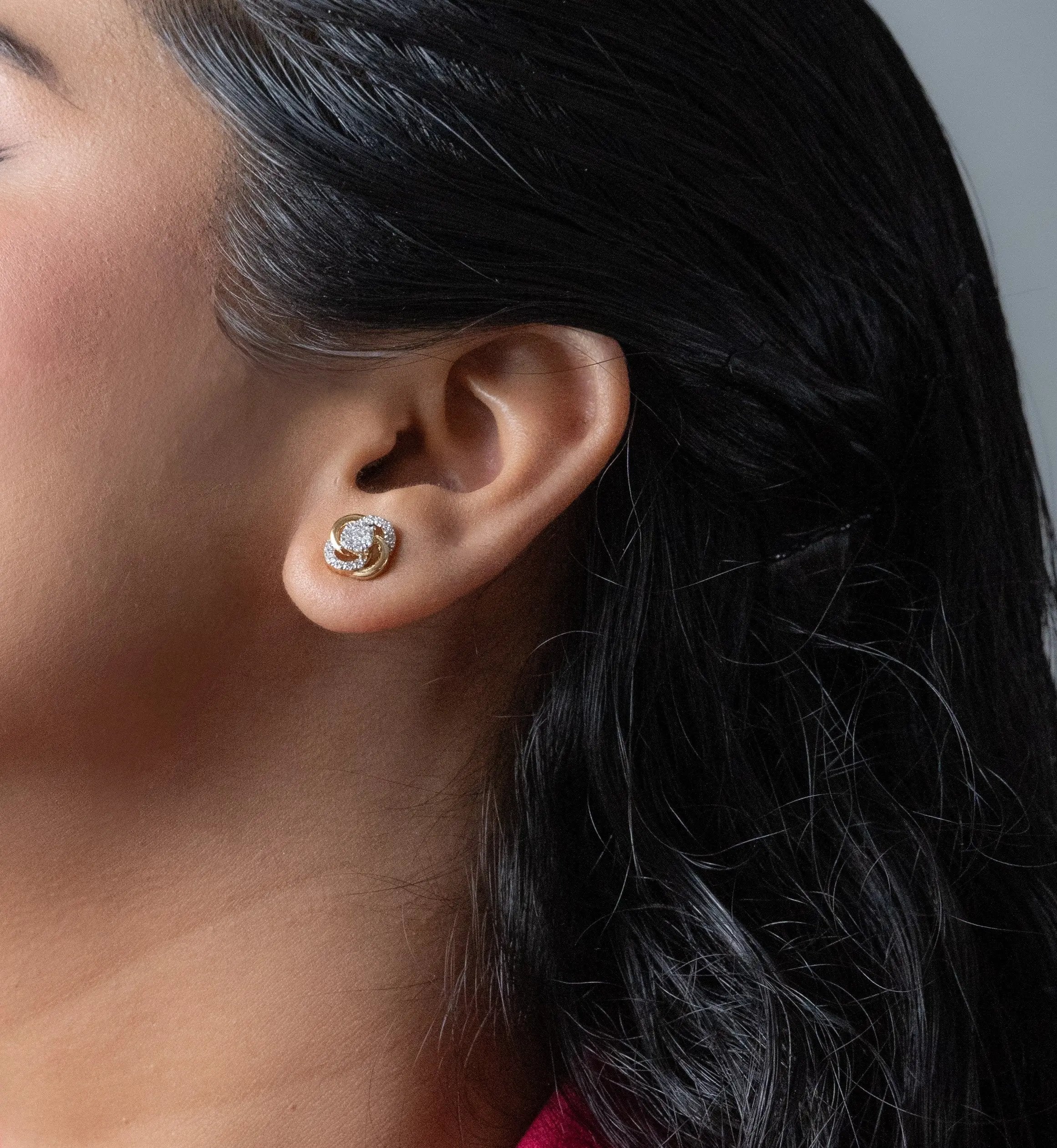 Elevate your elegance with these two-tone diamond cluster stud earrings. Crafted to showcase a stunning arrangement of sparkling diamonds, they add refined brilliance to any ensemble. The dual-tone metal design enhances versatility, making these earrings perfect for both everyday sophistication and special occasions.