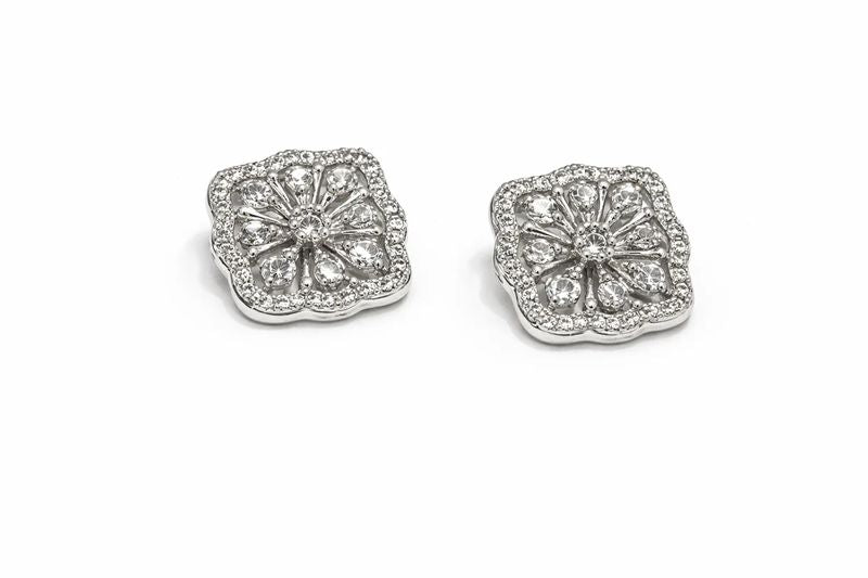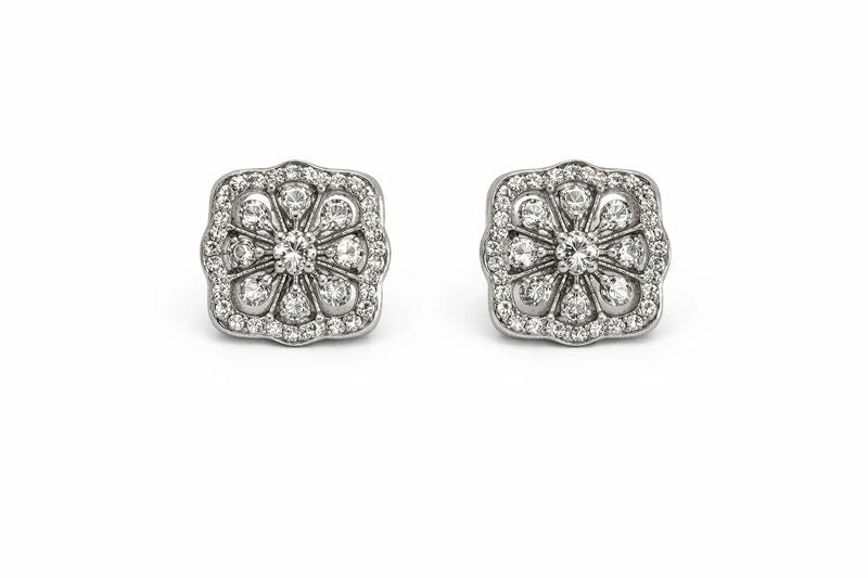 Vintage-Inspired Diamond Floral Halo Stud Earrings in White Gold