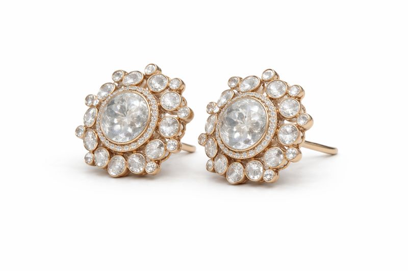 Vintage-Inspired Floral Polki Diamond Statement Stud Earrings
