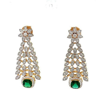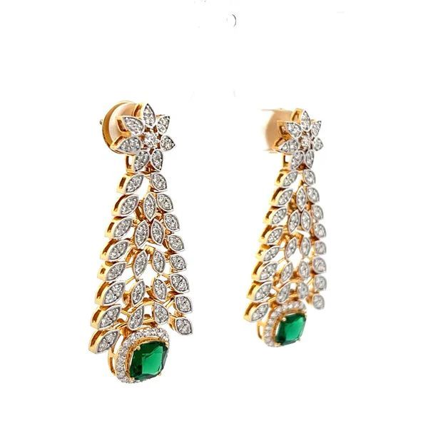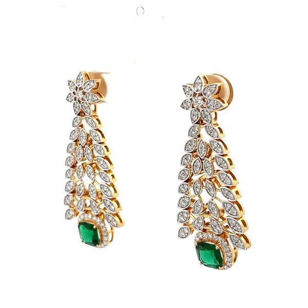 Vintage Style Cushion Cut Emerald and Diamond Tapered Dangle Earrings