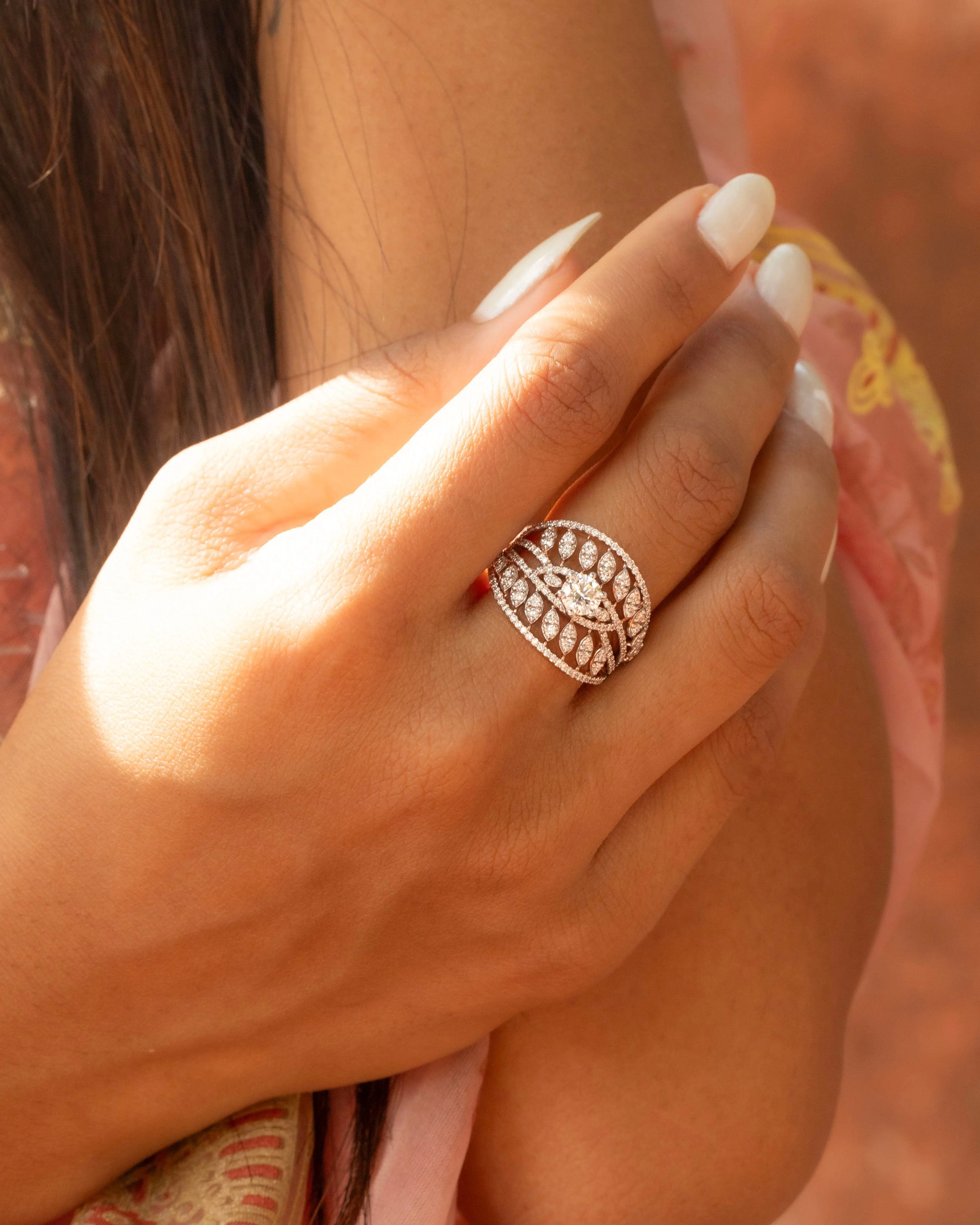 The Whispering Floral Diamond Engagement Ring showcases a beautiful lab grown diamond set within an intricate floral-inspired design. This elegant piece blends modern sustainability with timeless sophistication, making it an exquisite choice to symbolize everlasting love with a mindful touch.