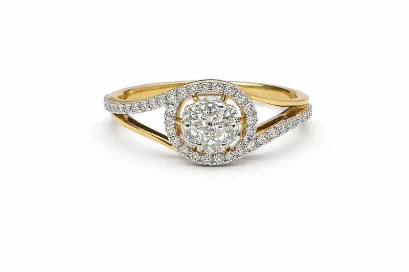 Yellow Gold Diamond Halo Ring with Round Cluster Center